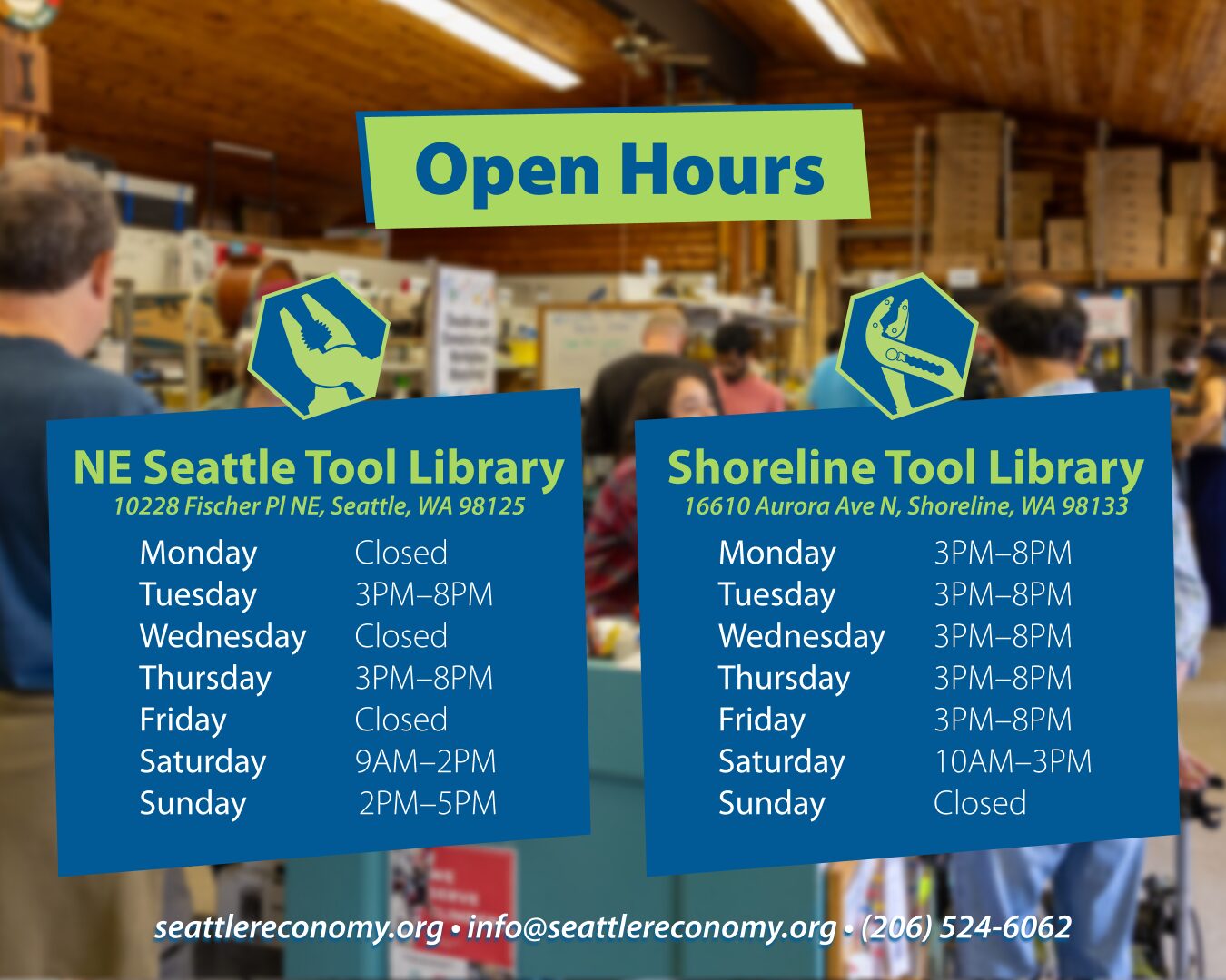 With overwhelming support at the NE Seattle Tool Library, we’re able to increase our open hours for the foreseeable future.