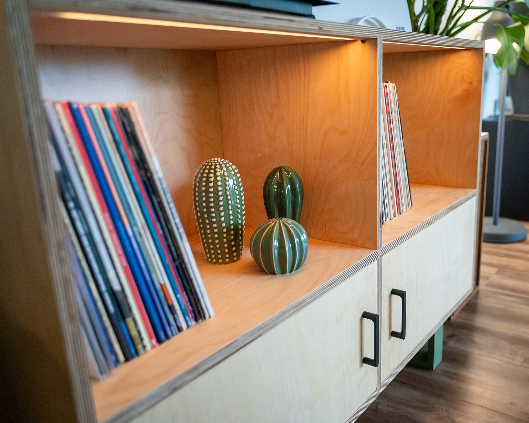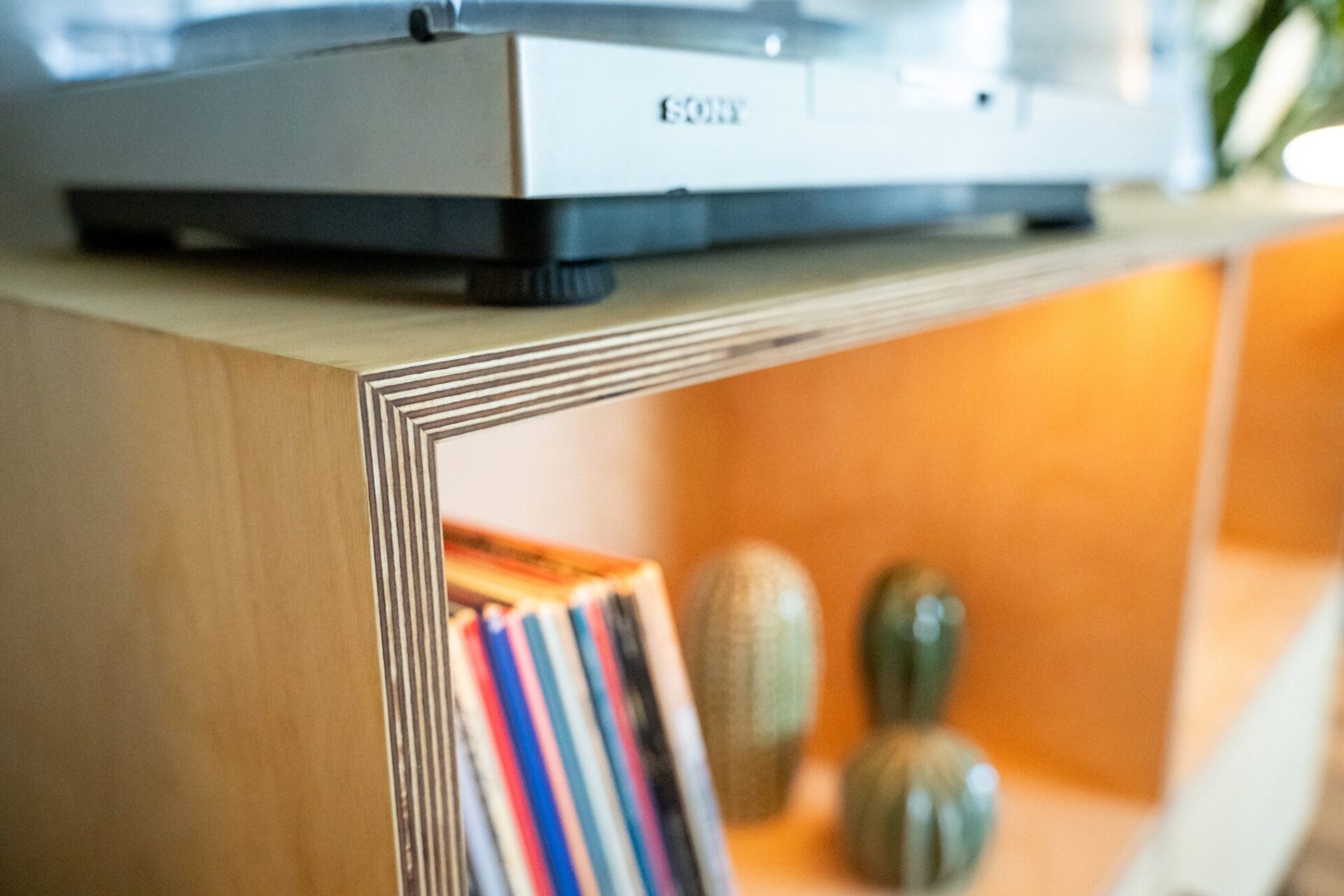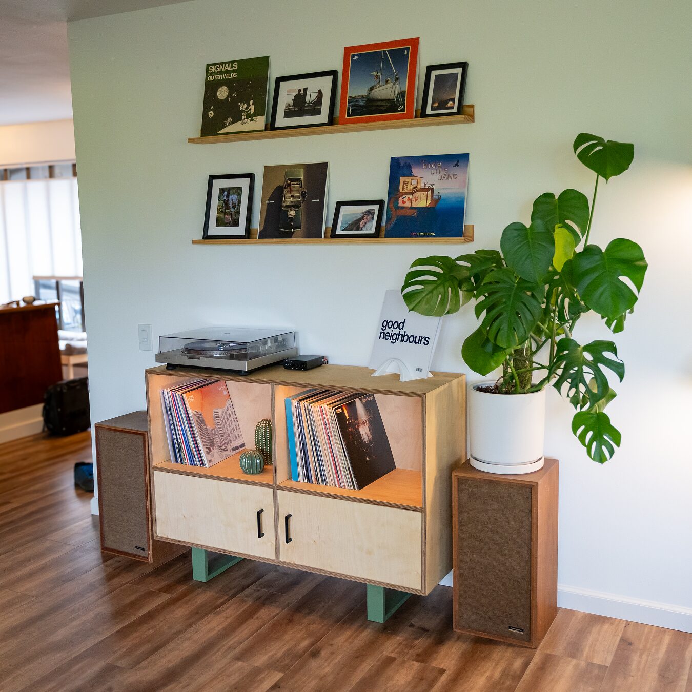 I recently completed a furniture project that I did in the Woodshop with Craig. It's a turntable console made with 3/4" Baltic Birch plywood, cut entirely in the NE Seattle Tool Library Woodshop, then glued up and finished with tung oil at home.