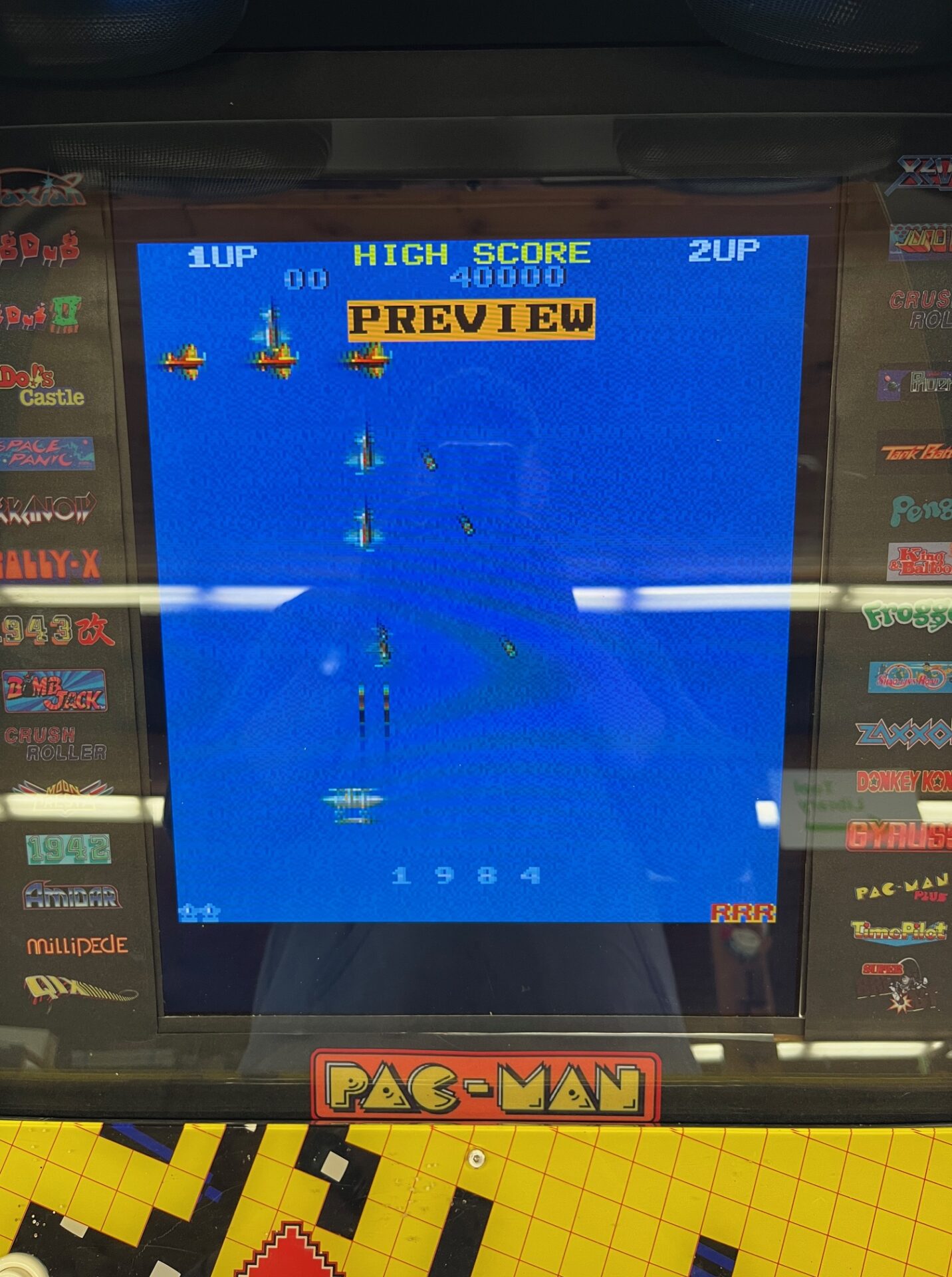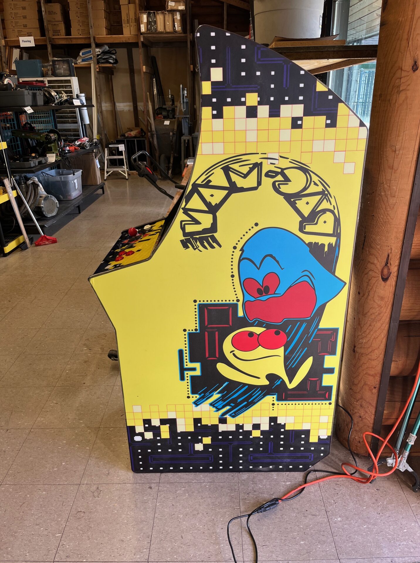 60-game mini arcade cabinet with built-in mini fridge. Includes multiple Pac-Man titles, Frogger, Galaga, Donkey Kong, Centipede, Dig Dug, 1942, and many more.