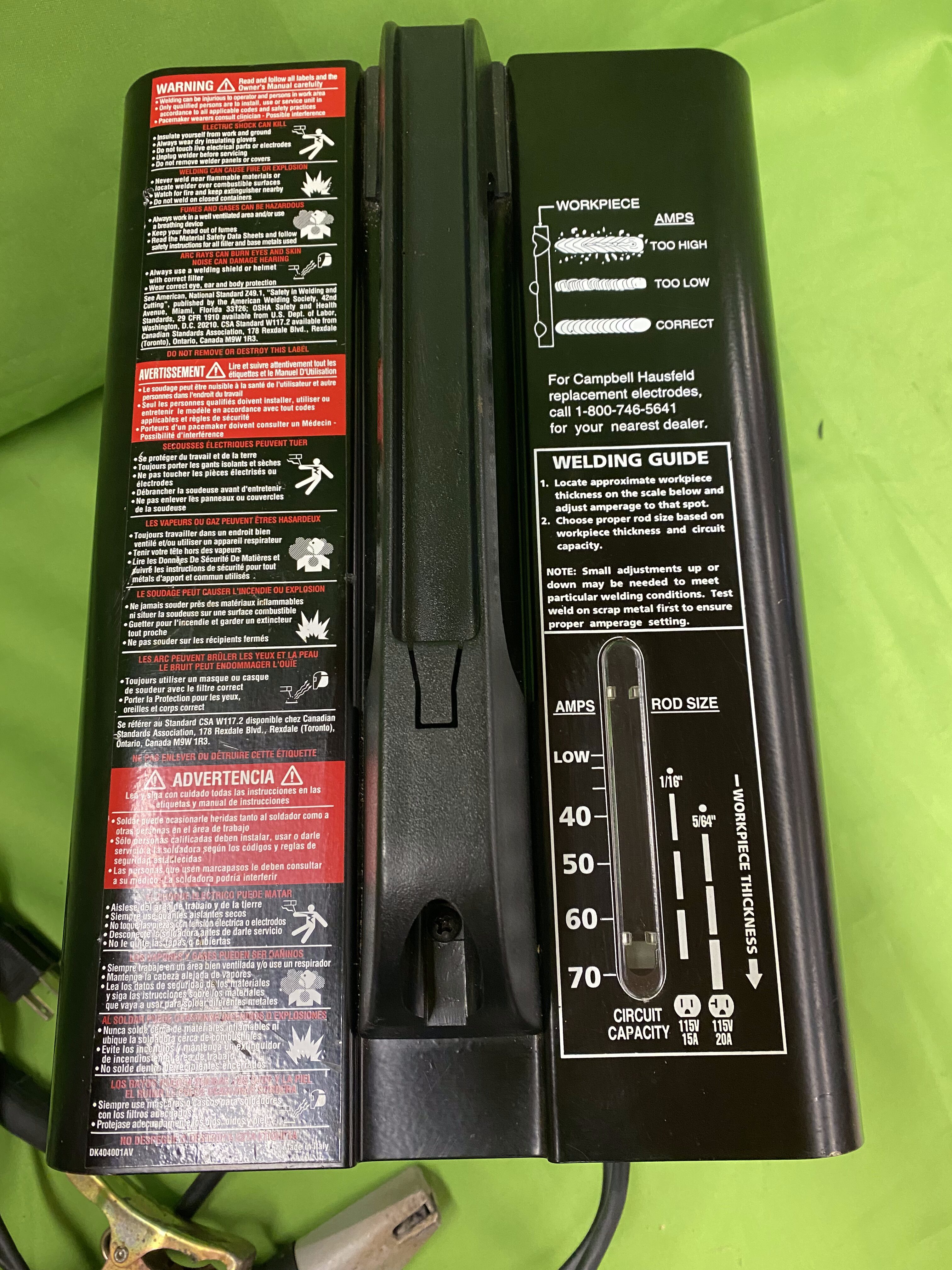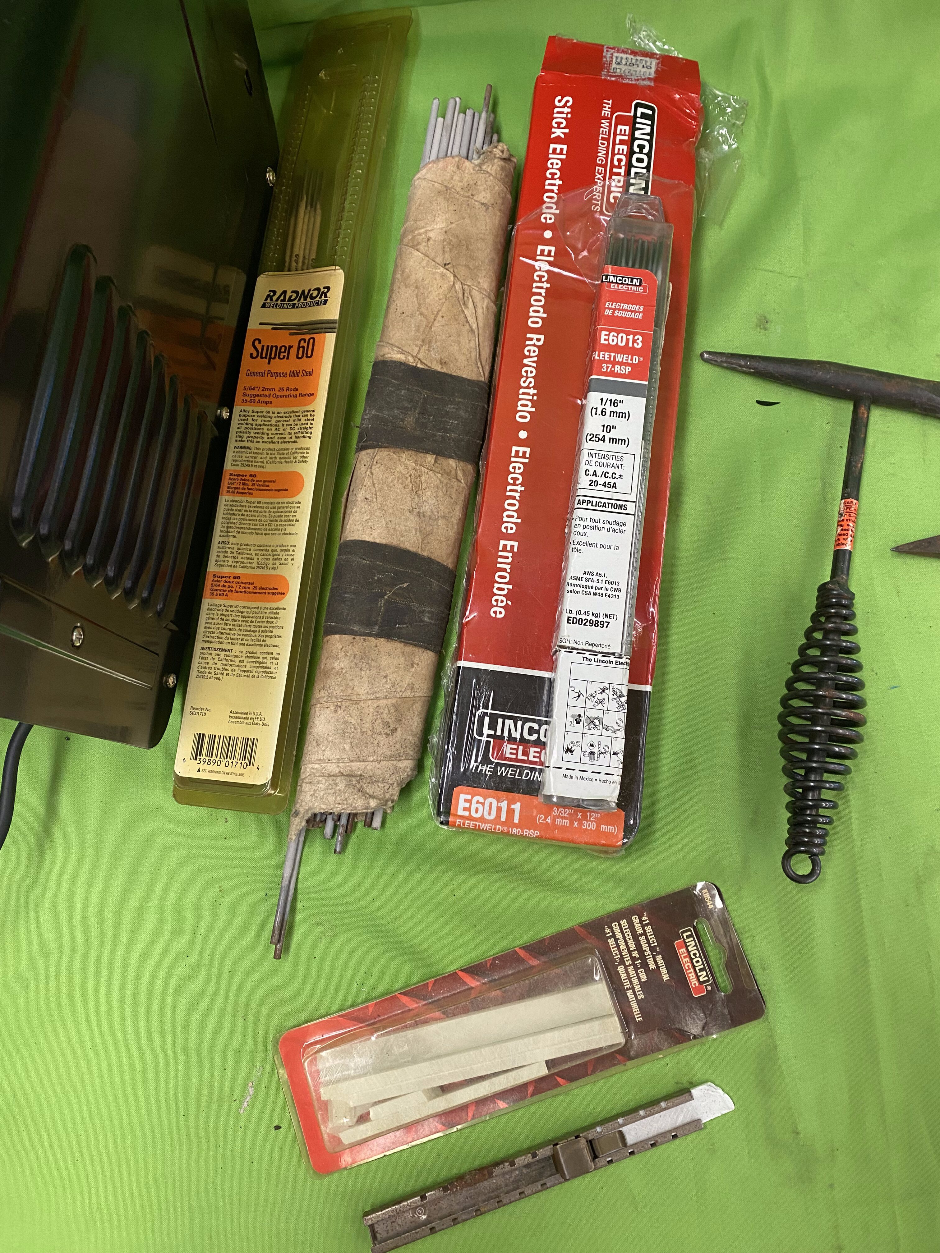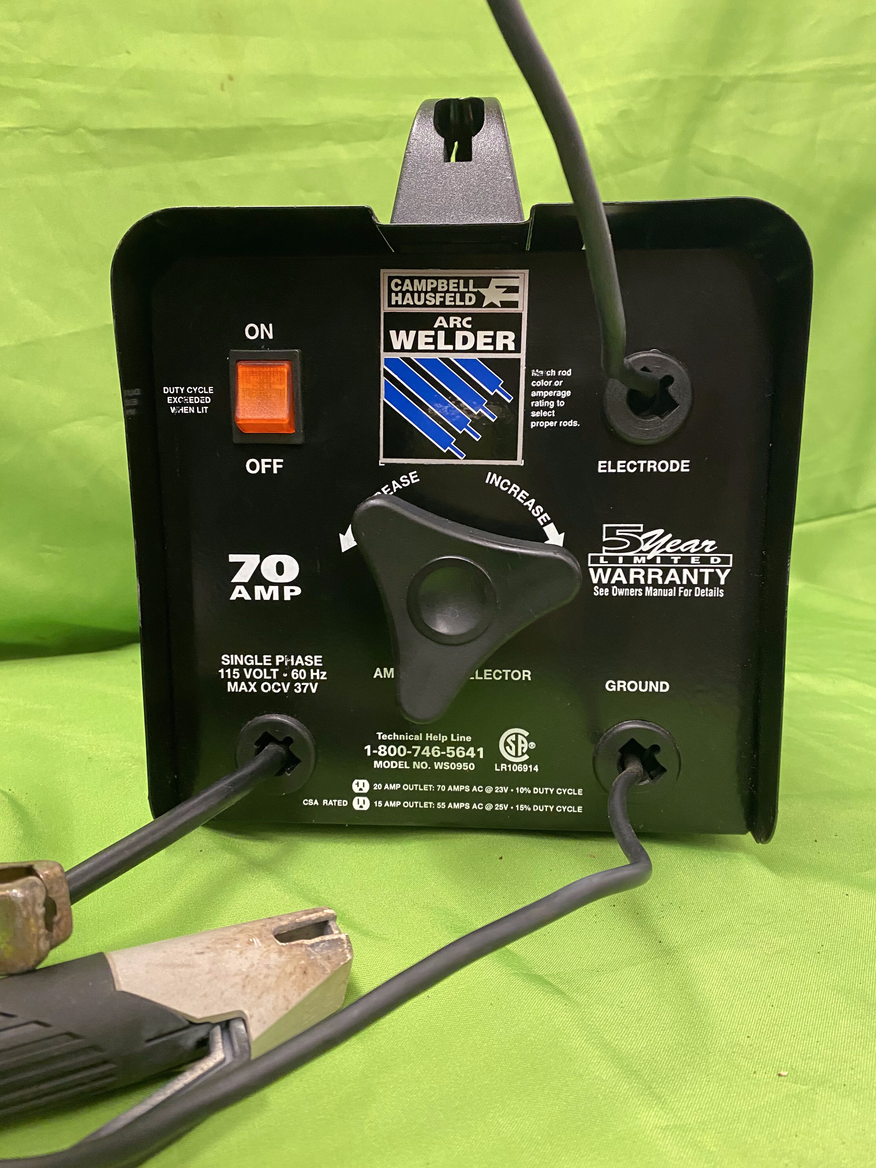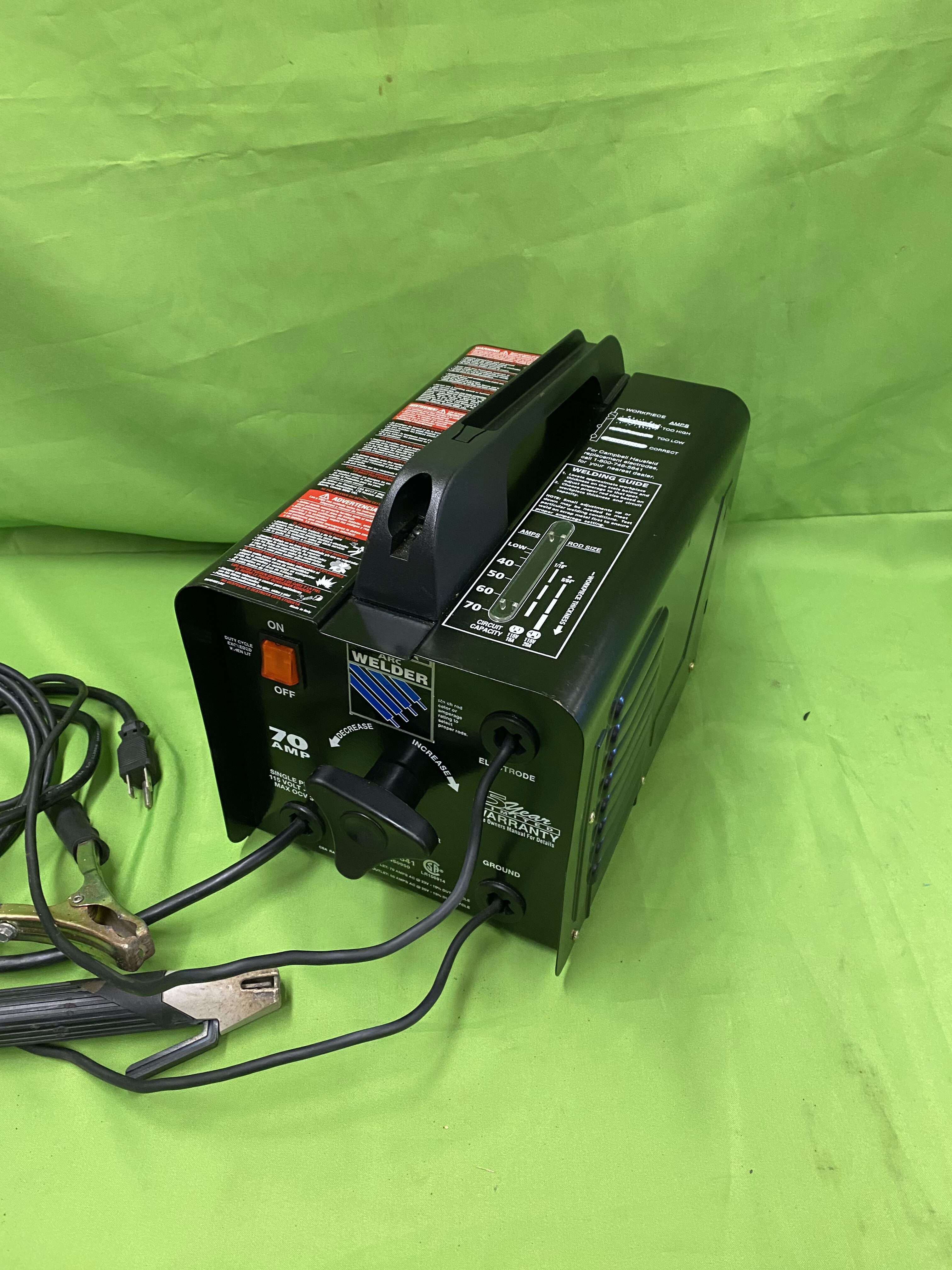 115V stick welder from Campbell Hausfeld, rated up to 70 amps with dual heat settings and thermal overload protection. Works great for light to medium welding projects and can handle up to 1/8" steel. Also includes some welding stock and tools.