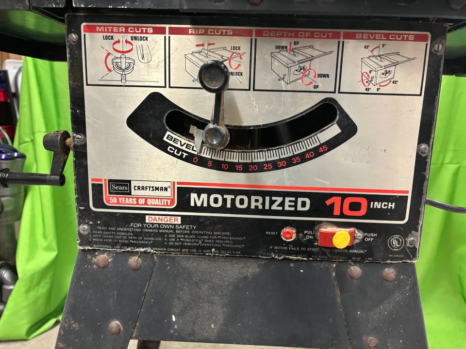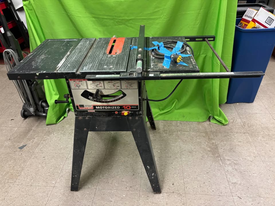 Solid craftsman 10″ table saw with stand and fence. Model 113.295820