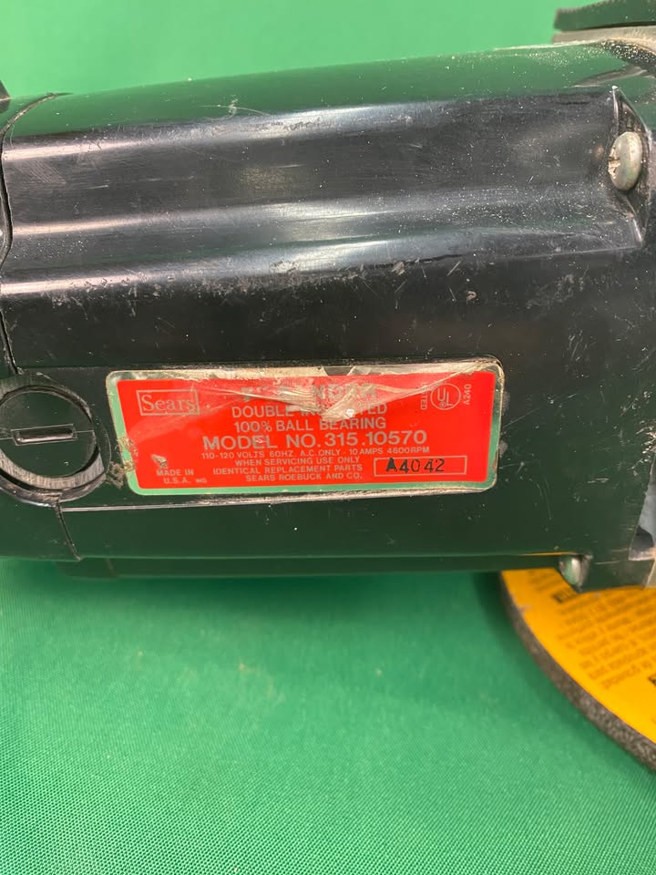 Craftsman 7″ sander model 315.10570. This is a heavy duty sander with side handle that takes a variety of 7″ sanding disks.