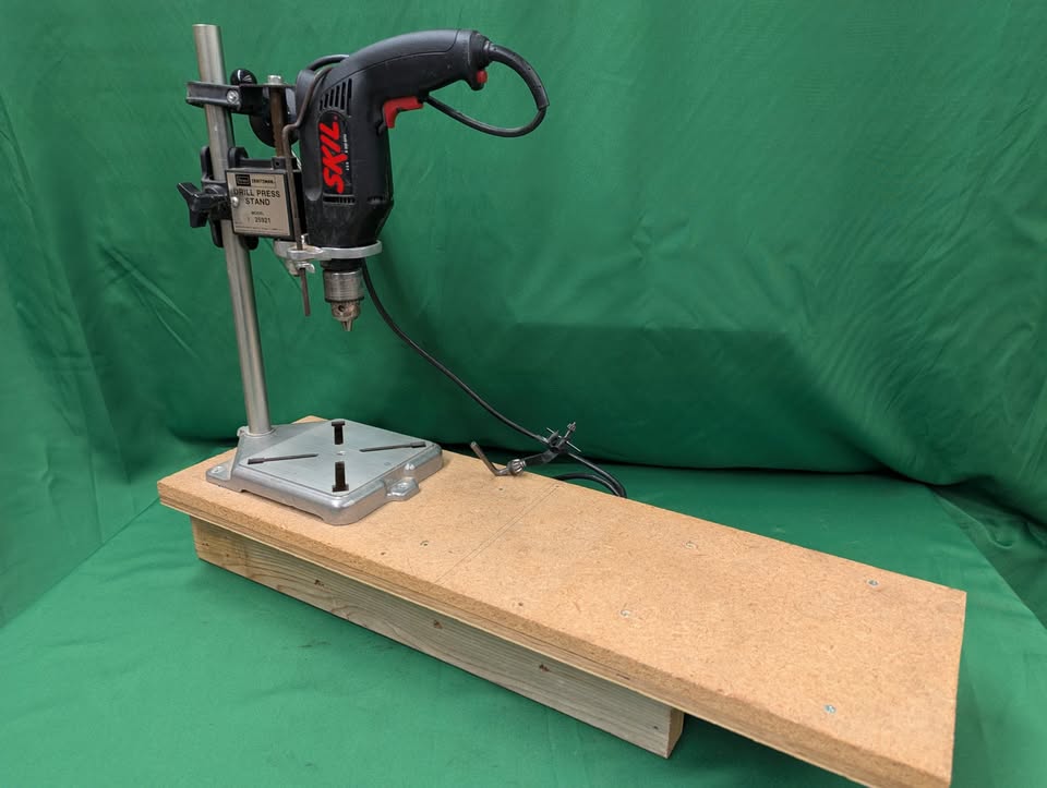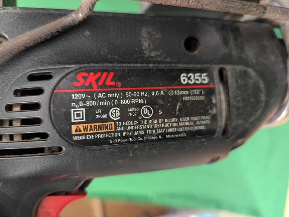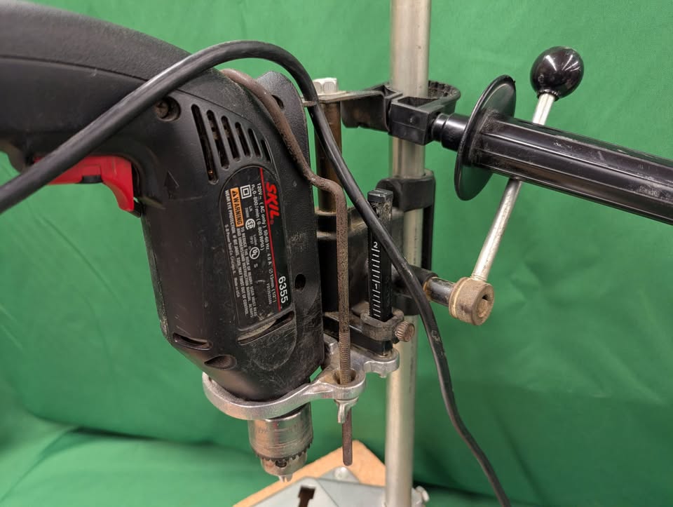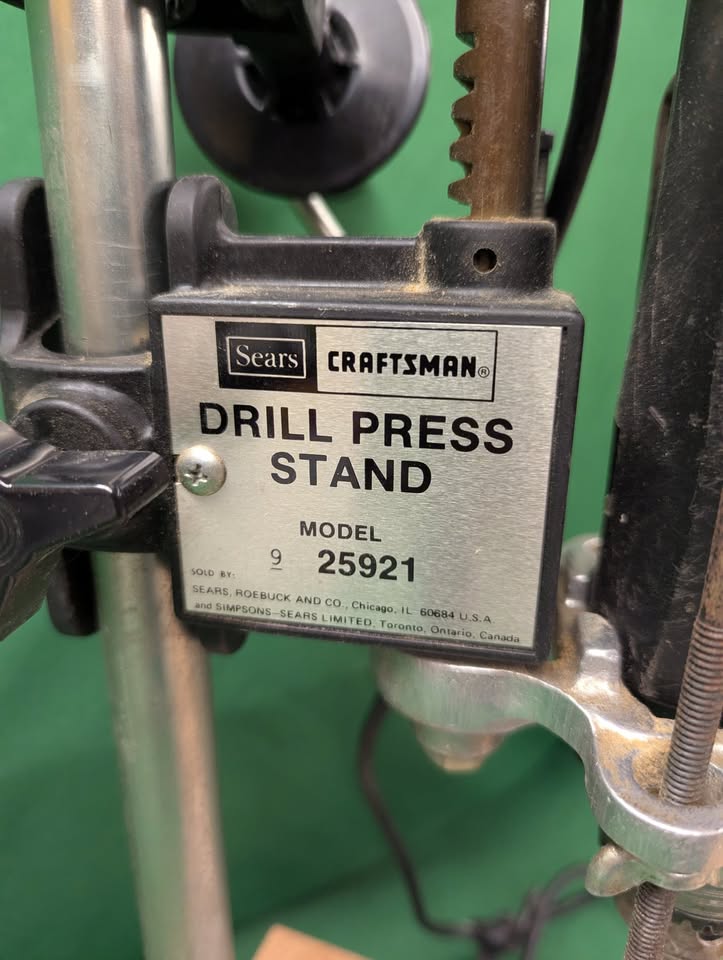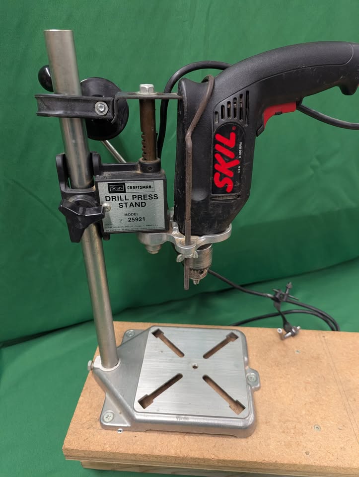 Sears Craftsman drill press stand model 35921, with Skil 1/2″ chuck drill model 6355.