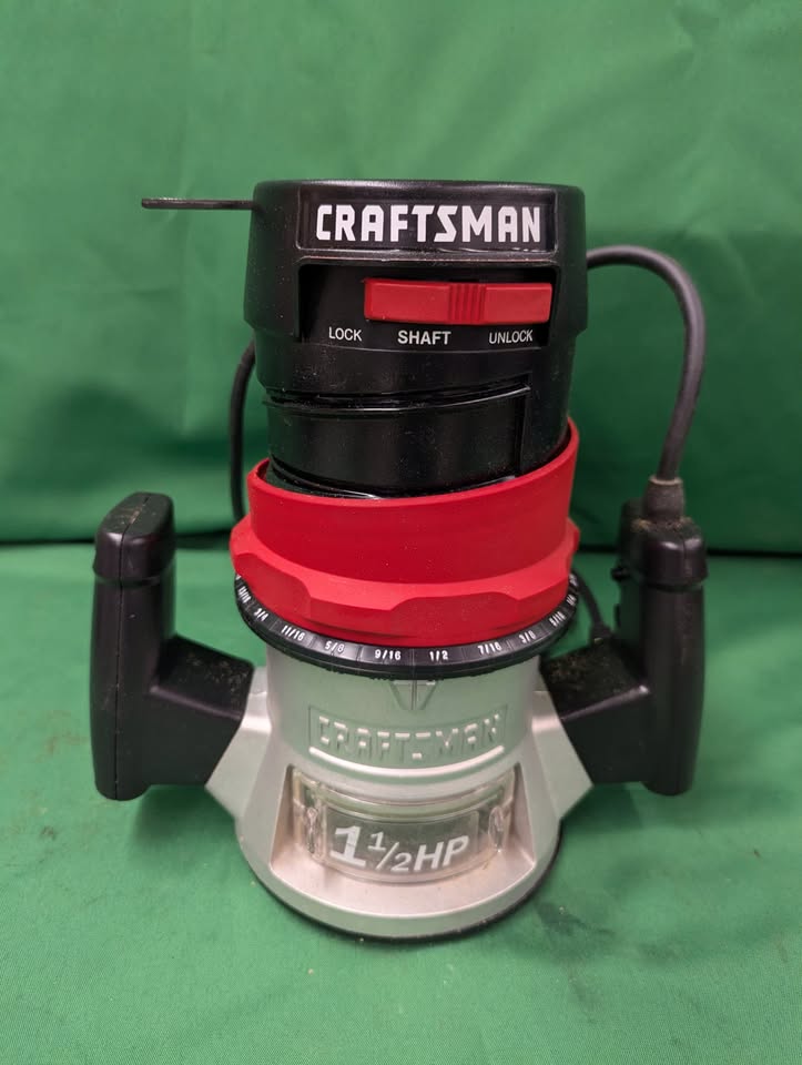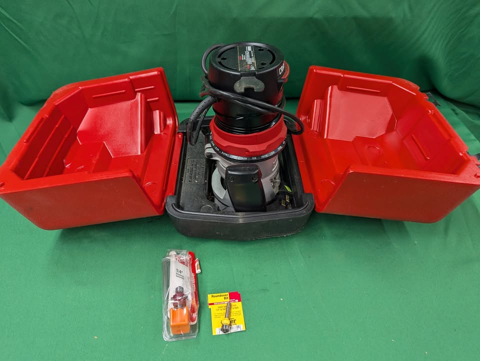 Great condition router from Craftsman. 1 1/4 HP. 1/4″ collet. Model 315.175040, 25000 RPM. Comes in carry case with 3 bits.