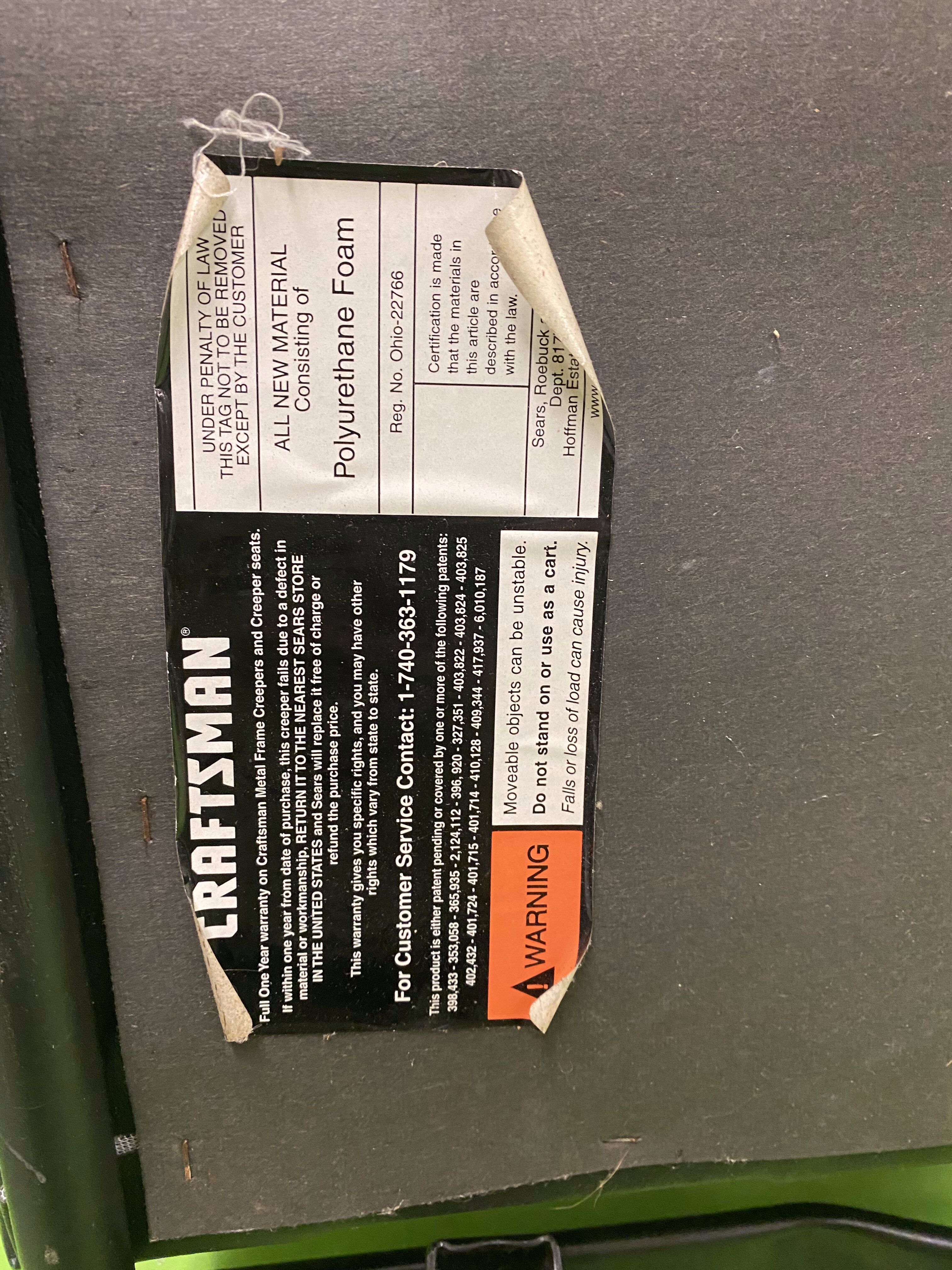 Like new professional creeper by Craftsman. Fully padded for extra comfort.
