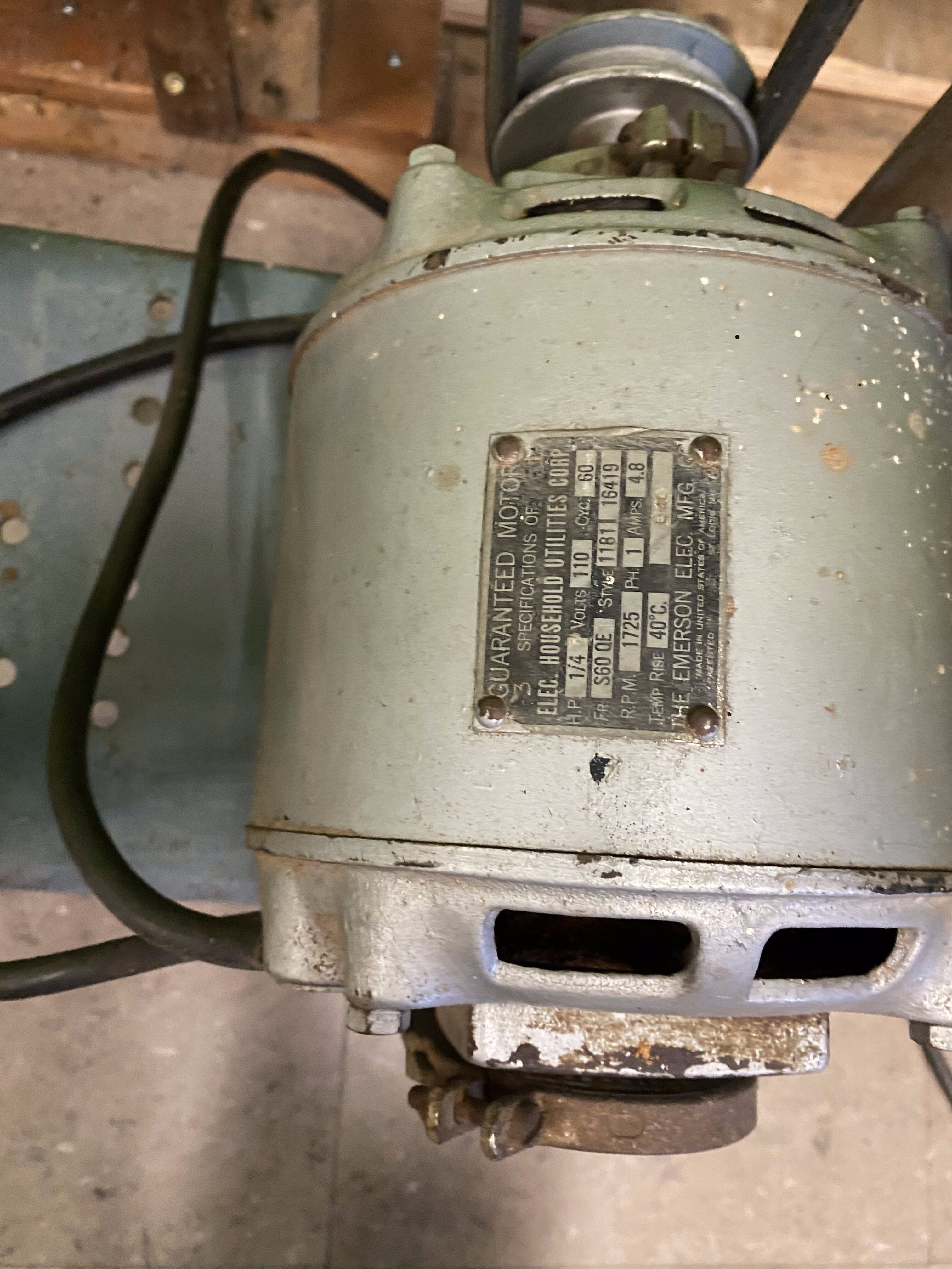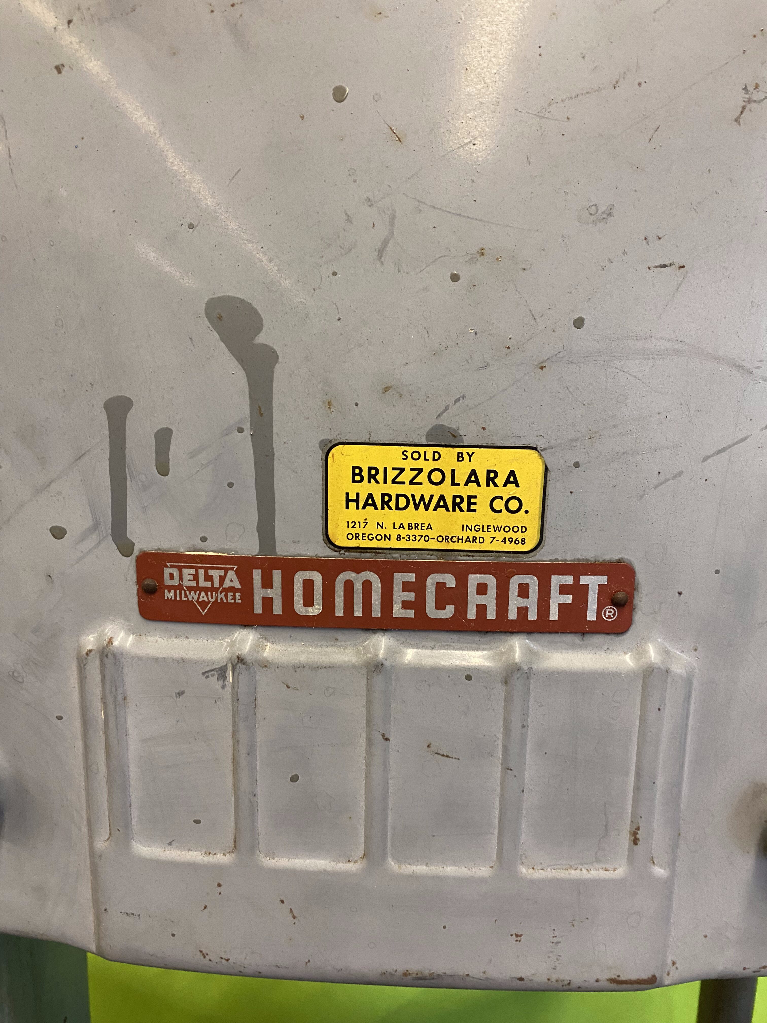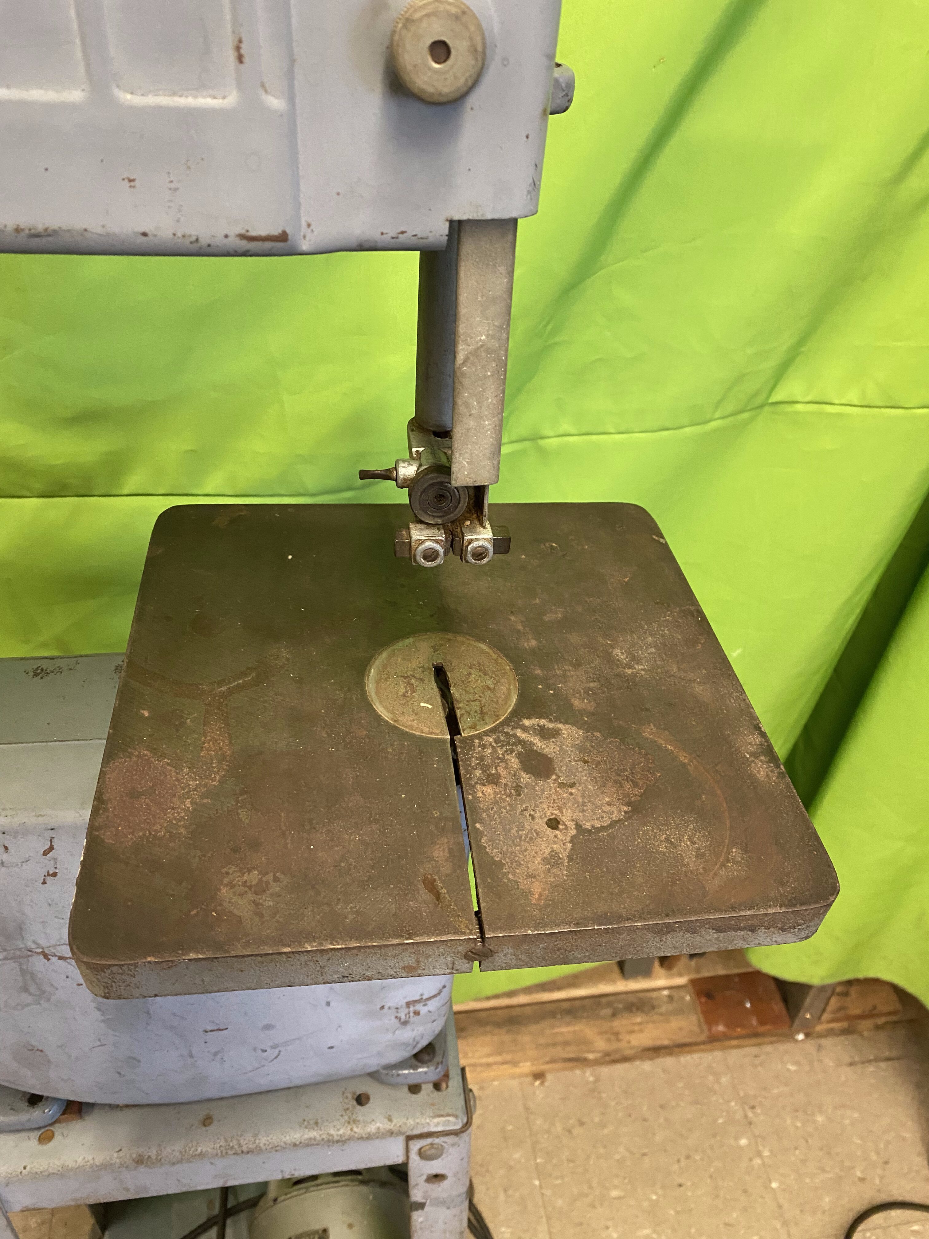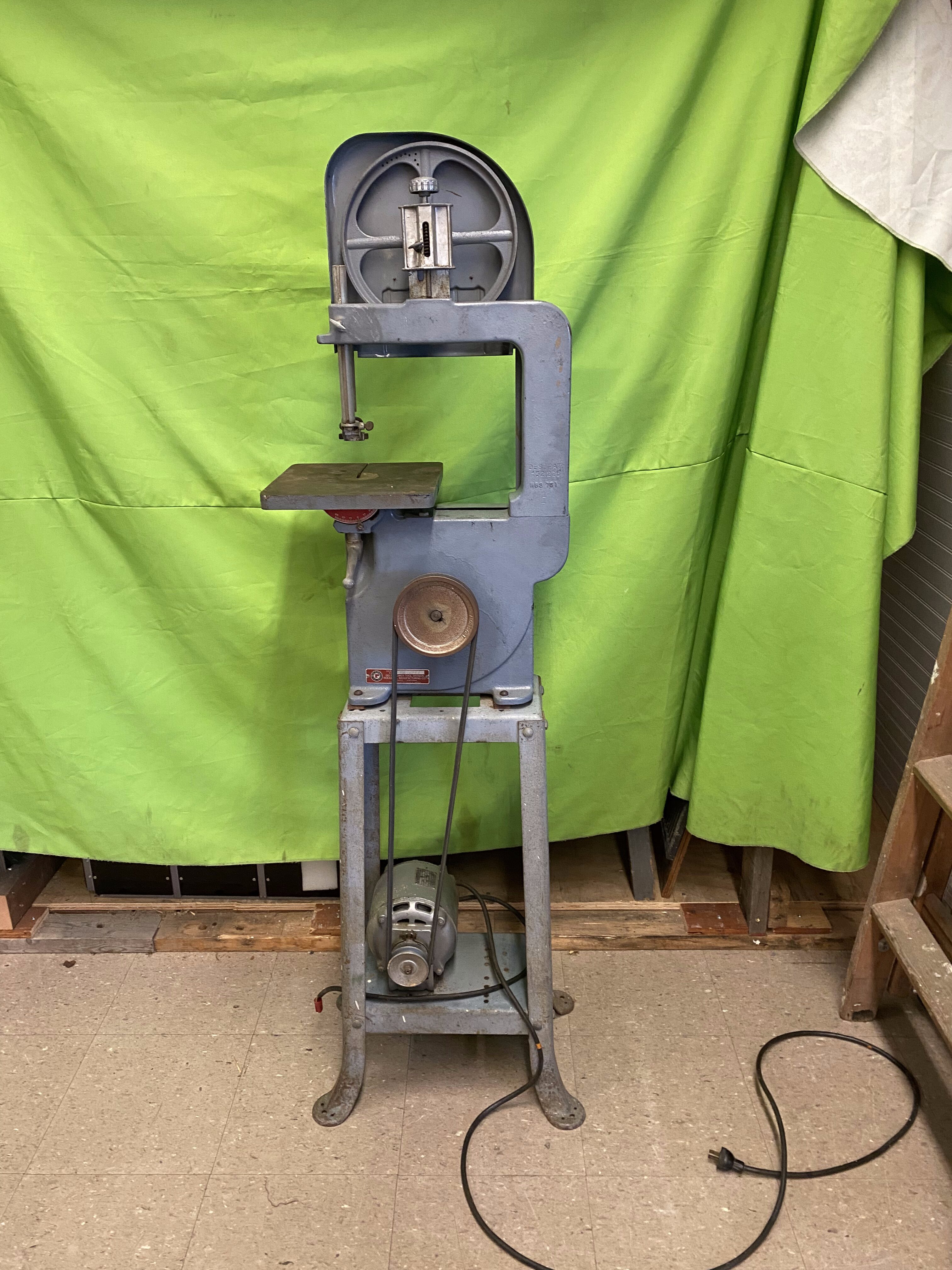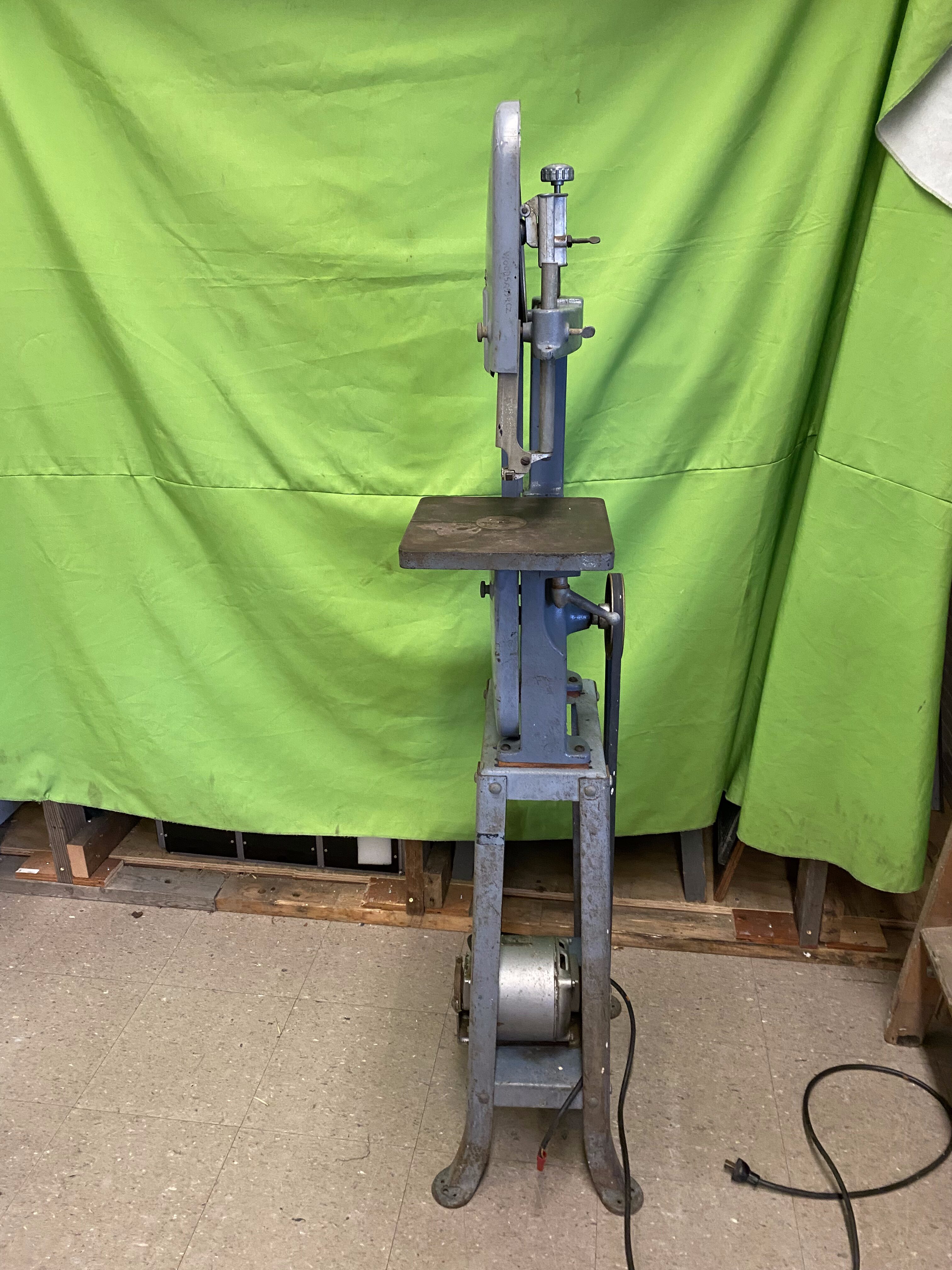 Vintage solid cast iron Homecraft bandsaw with stand and motor. 1/4hp and 110 volts.
