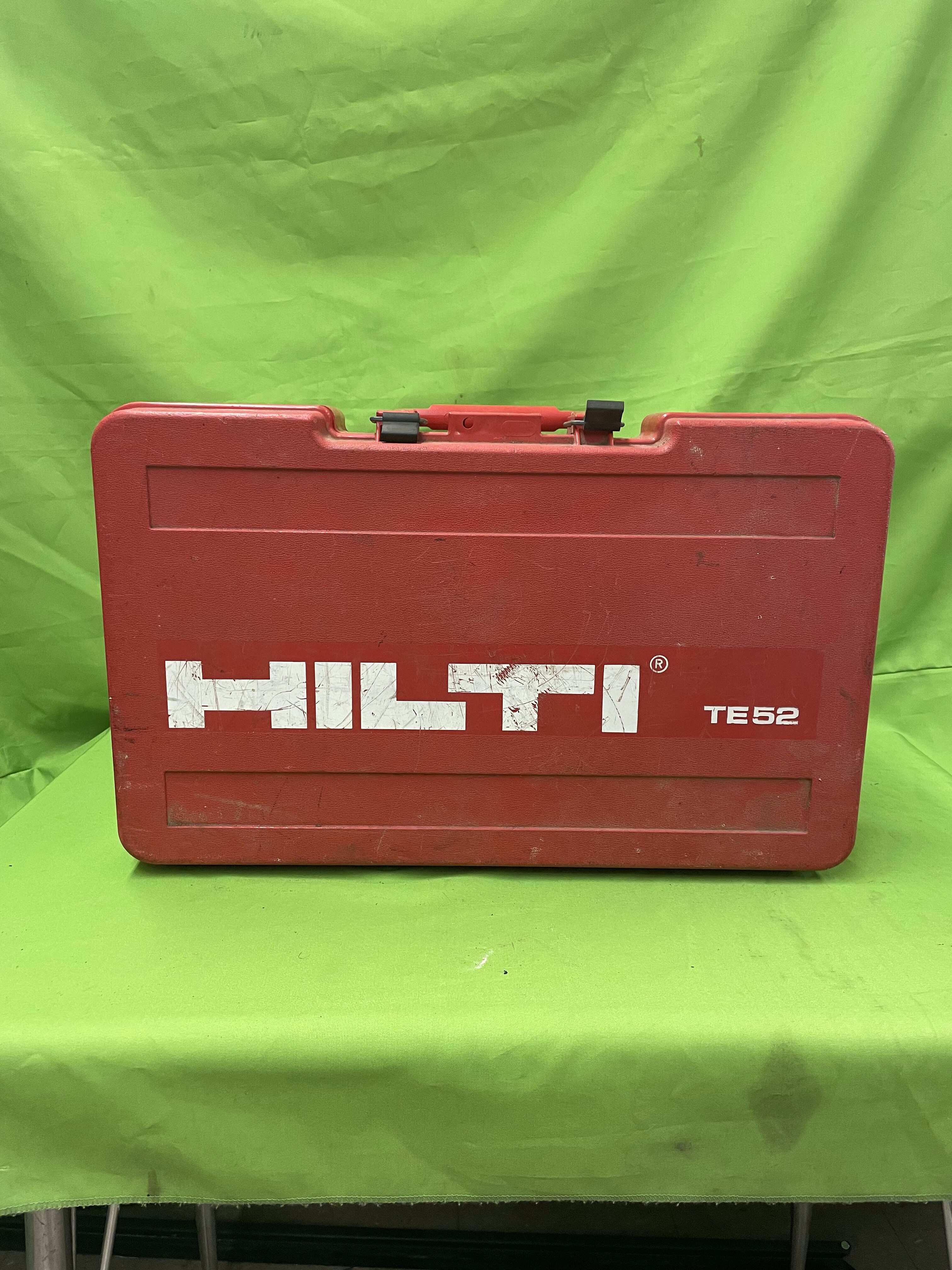 Powerful and dependable Hilti TE 52 rotary hammer drill, built for heavy-duty concrete and masonry work. Uses SDS-Max style bits and is designed to perform in hammer + rotary modes, making it ideal for drilling anchors, coring, or chipping. The unit is used but fully functional, with normal wear from job site use. Comes with the drill itself and the original case.