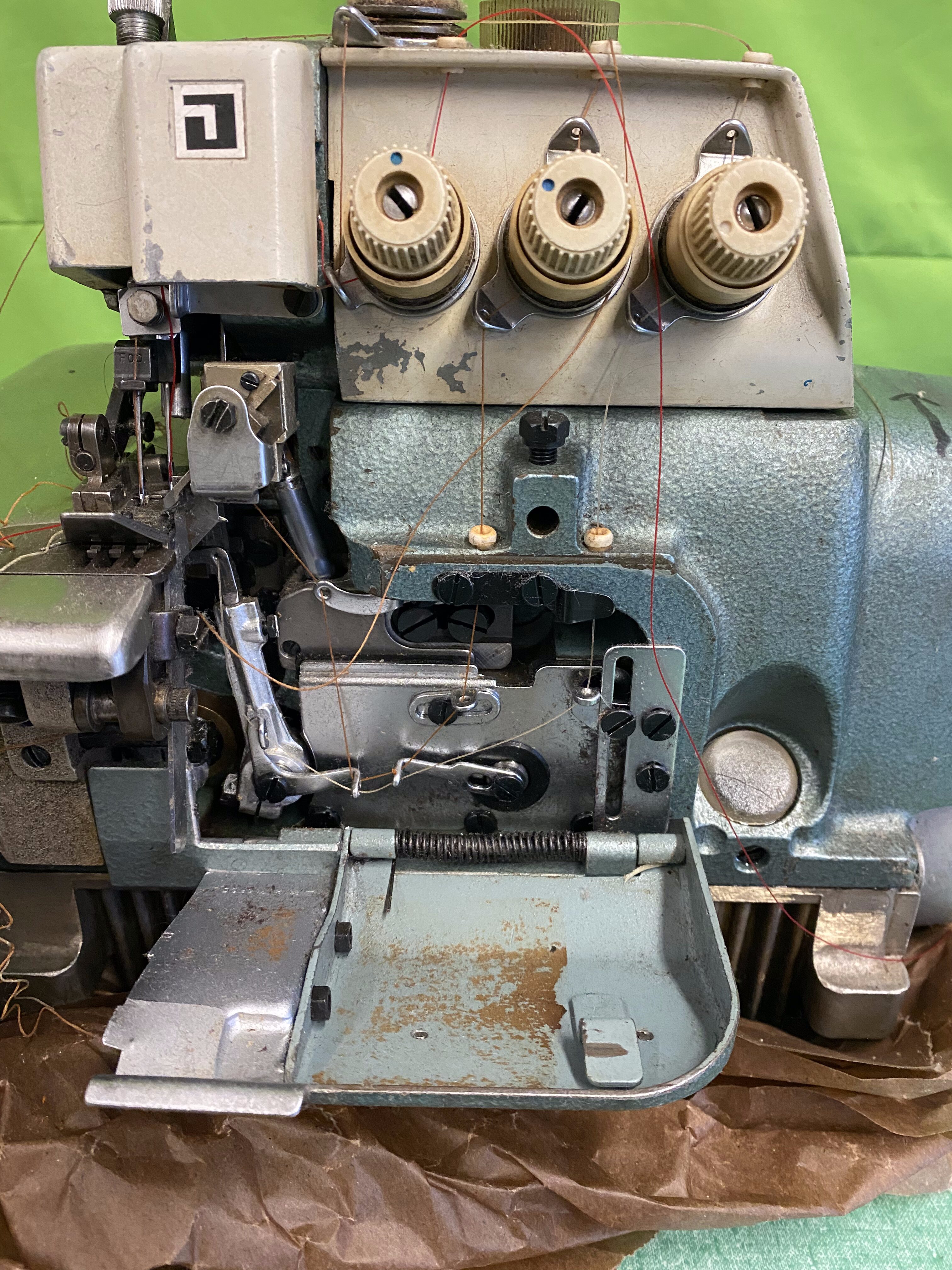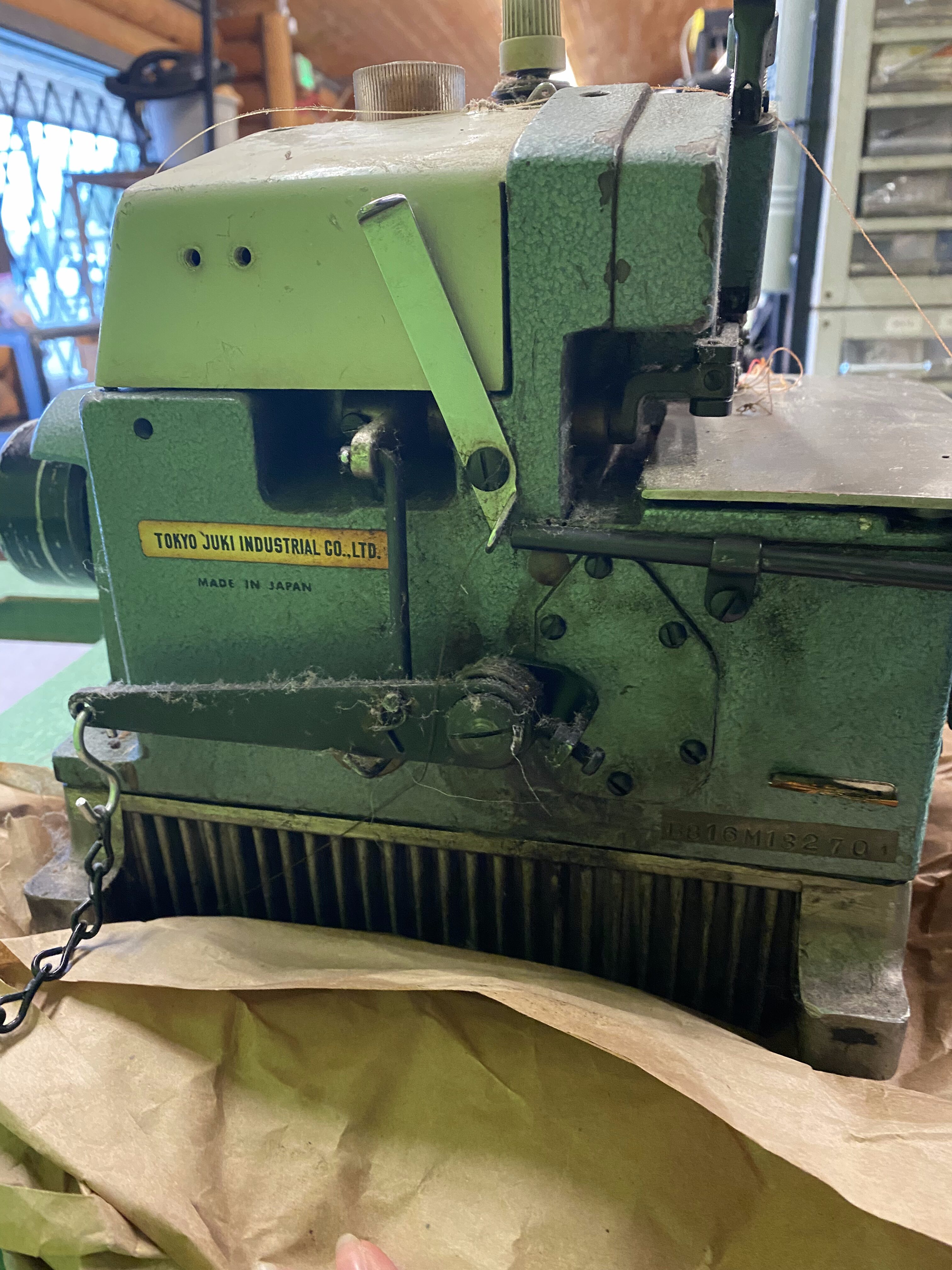 If you have considered getting an industrial serger, here is the one for you! It needs a good cleaning but it is in working order. Great brand made in Japan, known to be reliable and capable of heavy duty jobs.