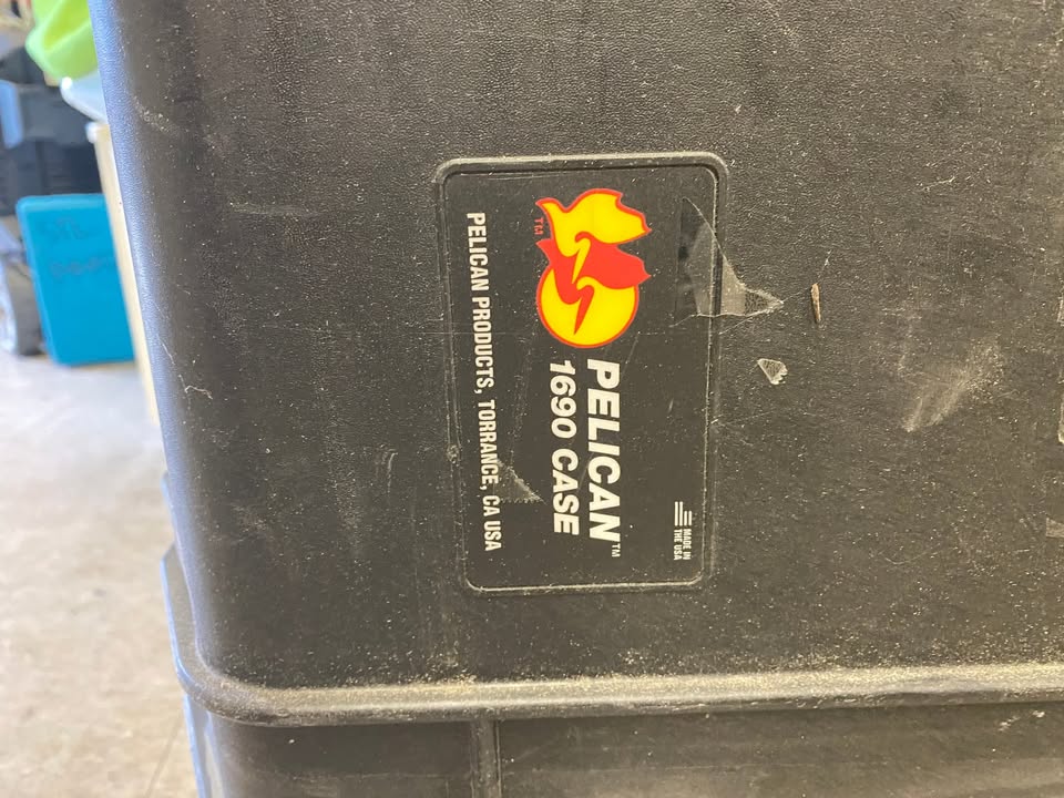 Pelican 1690 protective hard cases. Heavy-duty, watertight, and built for transporting large or sensitive equipment. These cases have some cosmetic damage/wear but are still functional and secure. Foam may need replacement depending on use. Great for tools, cameras, or gear that needs tough protection at a fraction of the new cost. 3 currently available, 4th is available but in storage so you will have to message ahead if you want it!