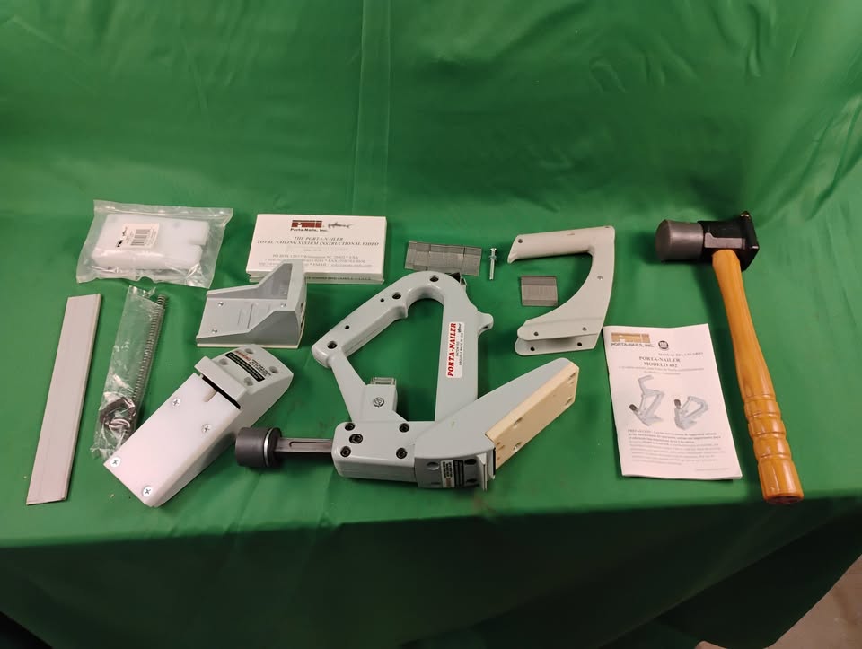 Flooring nailer setup with manual and case. Used for installing hardwood and other types of flooring that require nailing through the tongue. In very good shape.