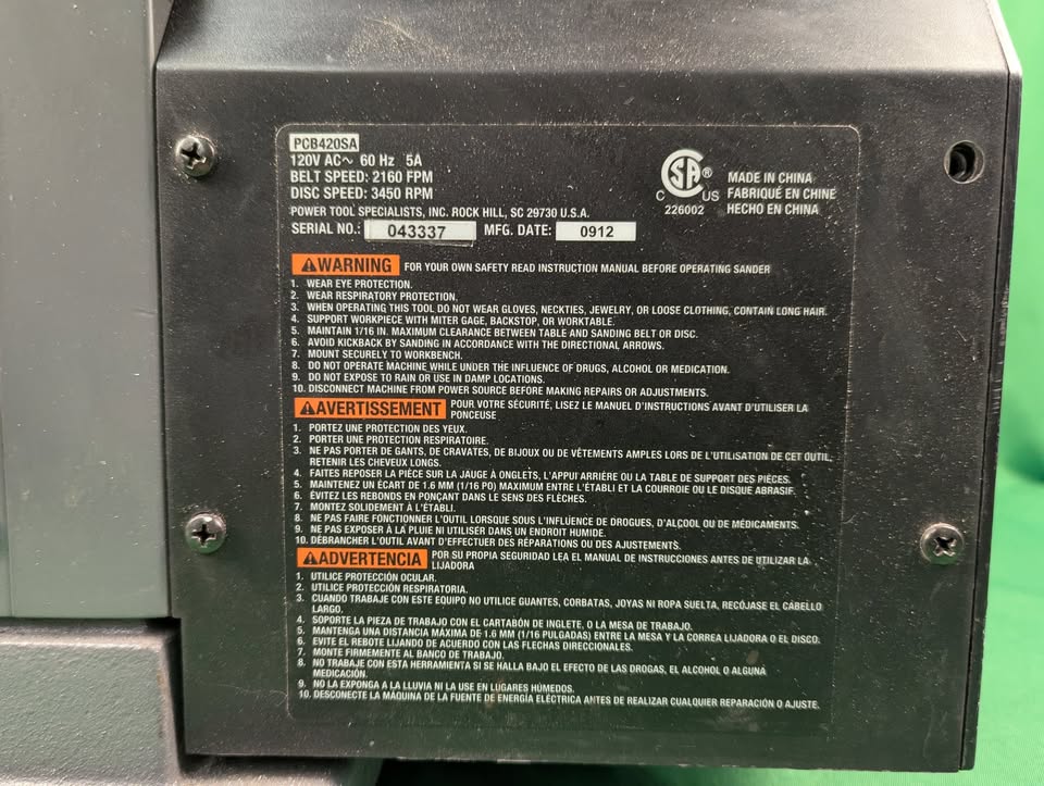 Porter Cable disc/belt sander. Good condition, great for many woodworking projects. Missing fence and dust bag. Model PCB420SA