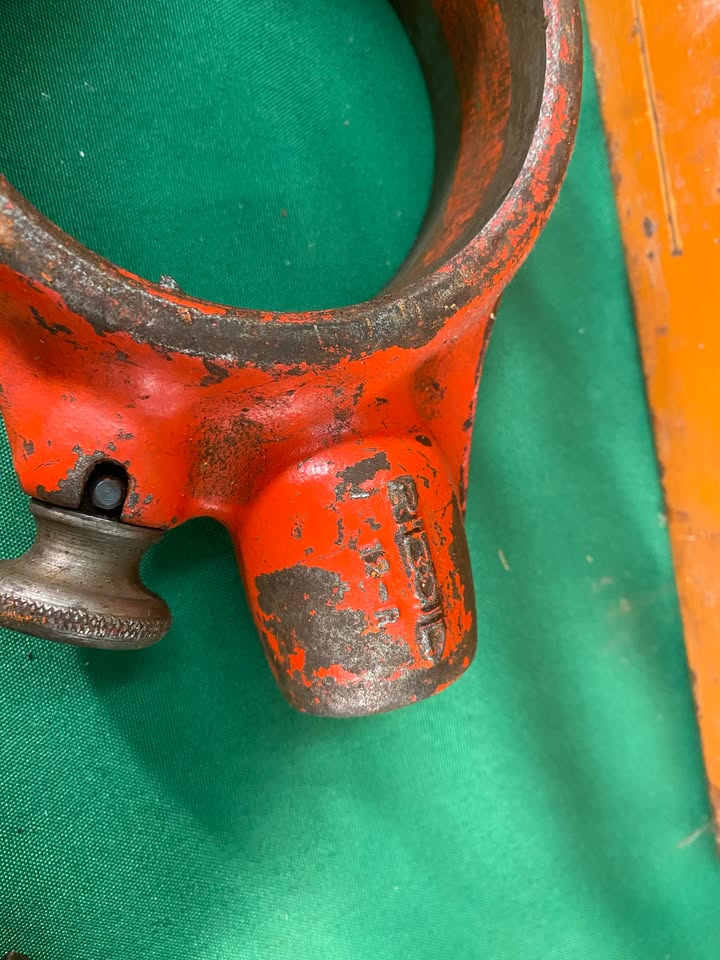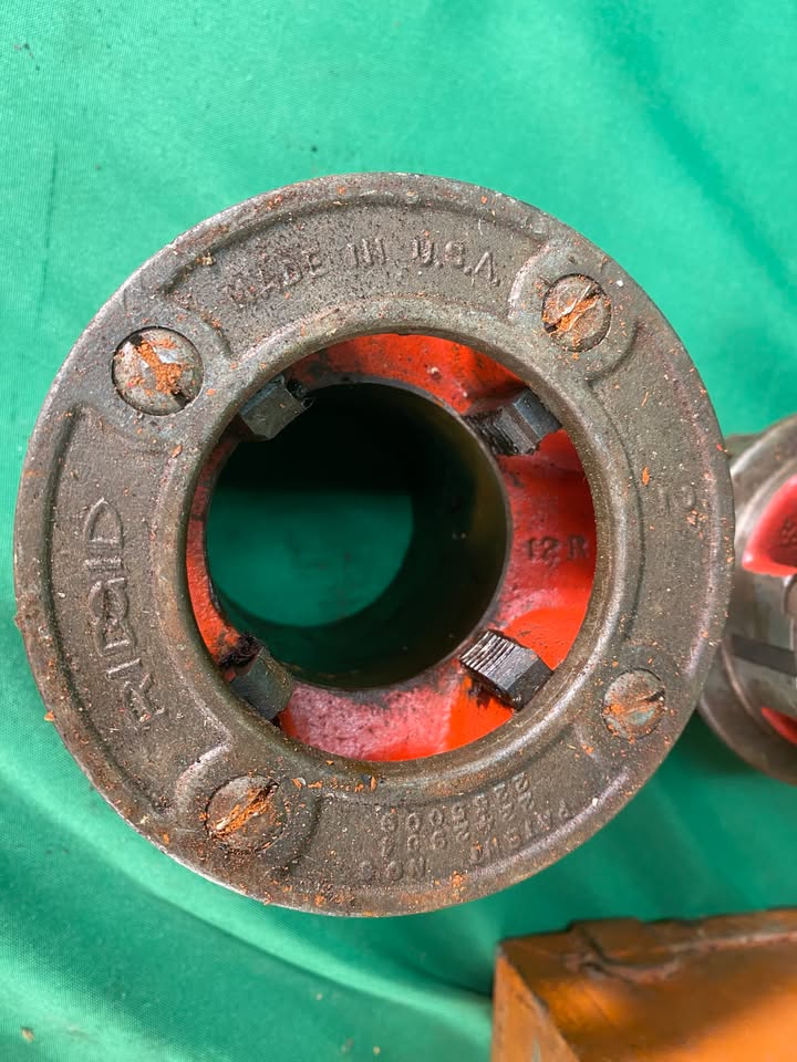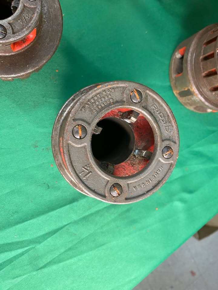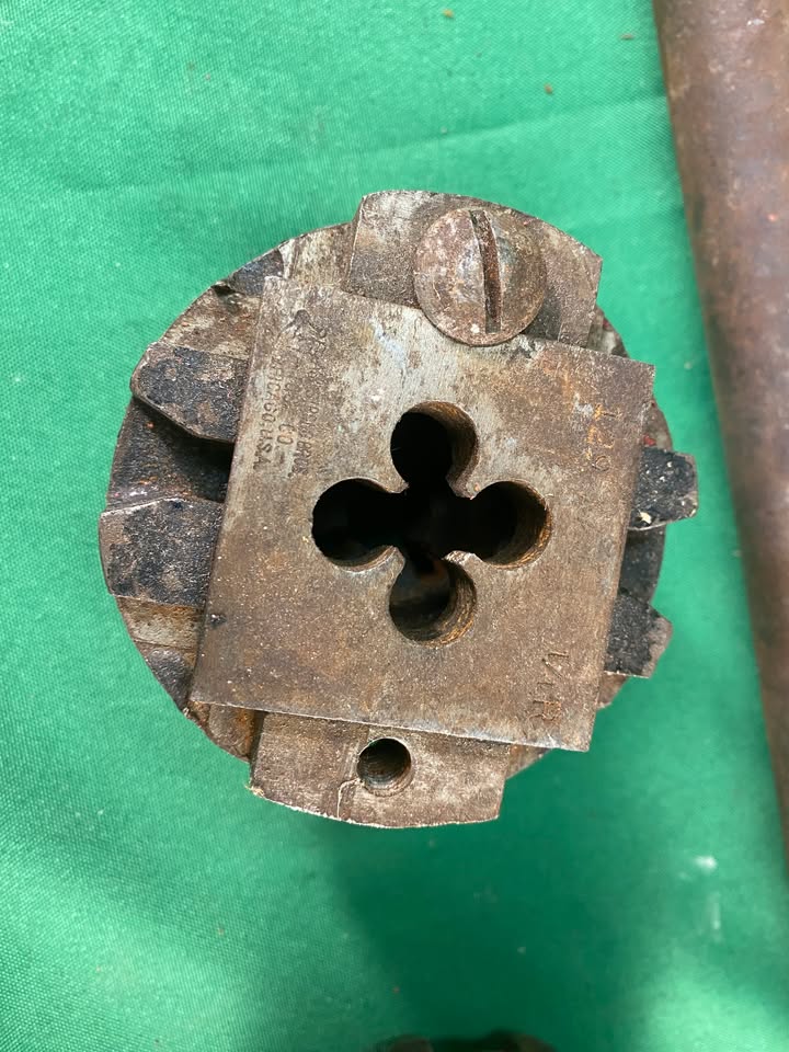 Well used, bar-type pipe threader with 8 dies ranging from .25″-2″.