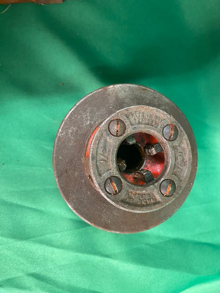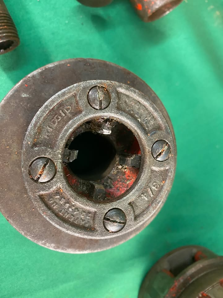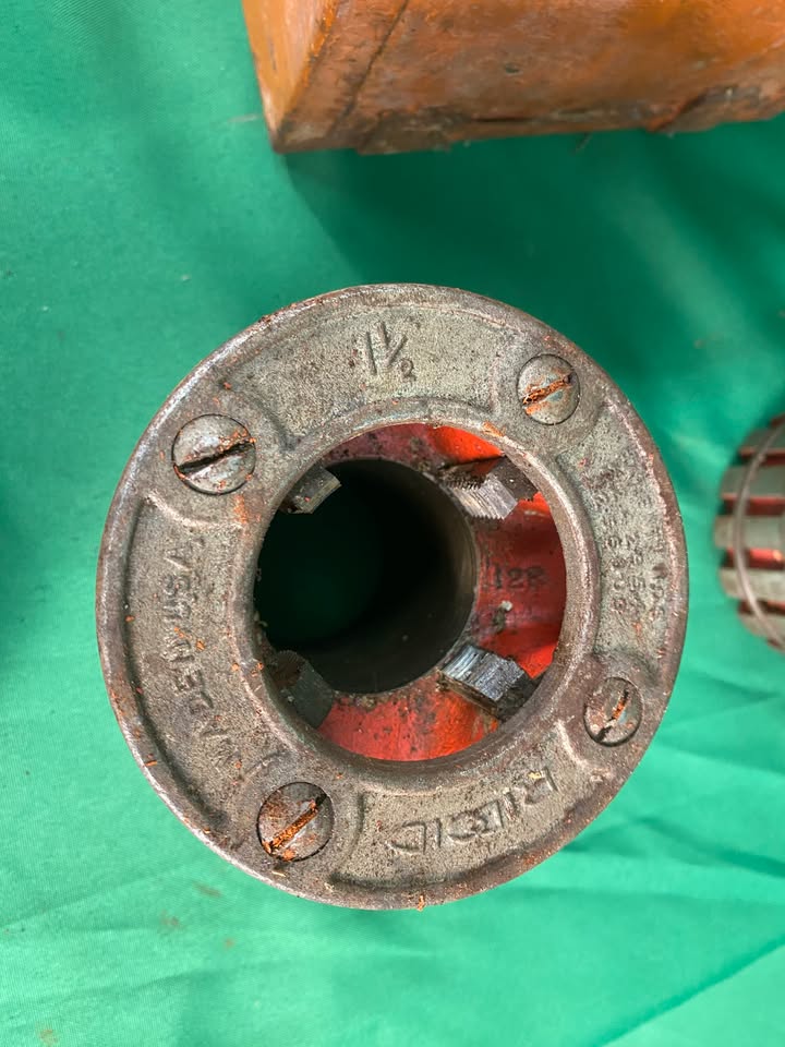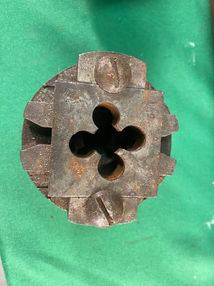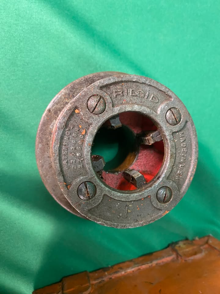 Well used, bar-type pipe threader with 8 dies ranging from .25″-2″.