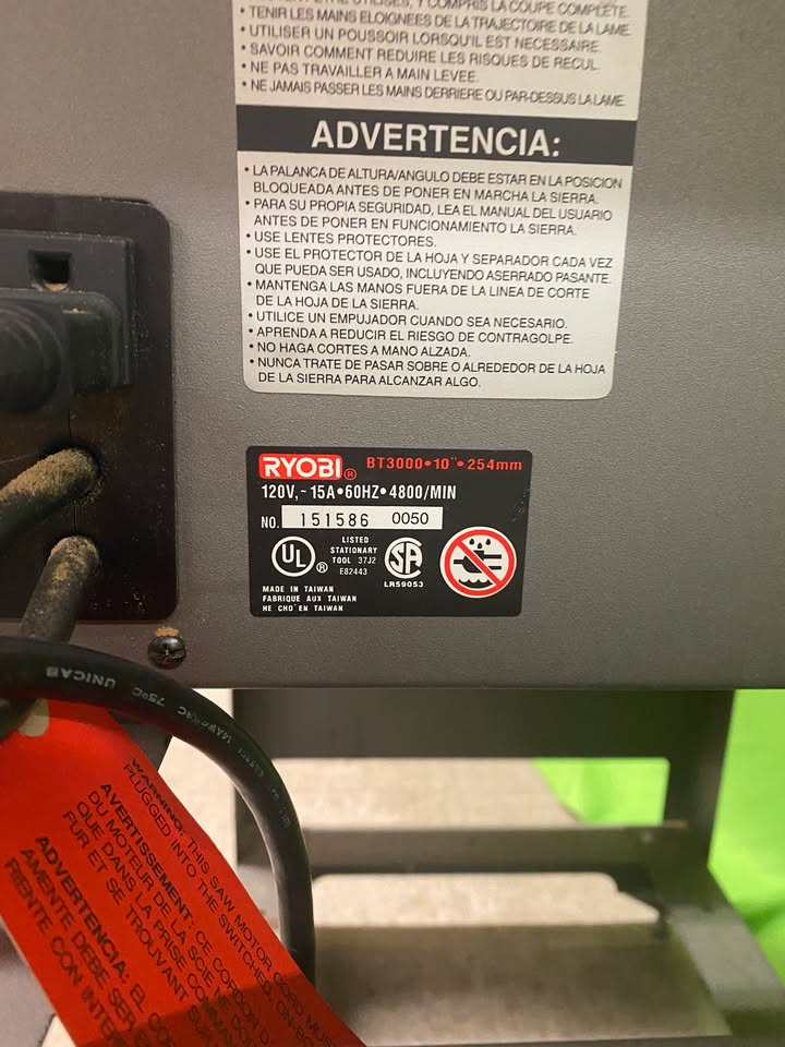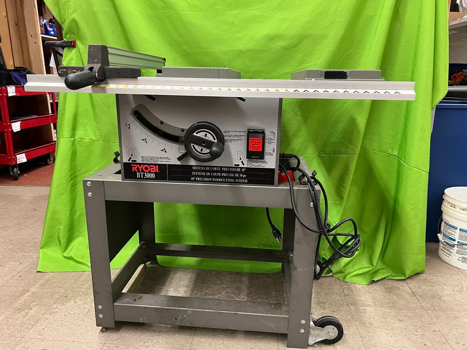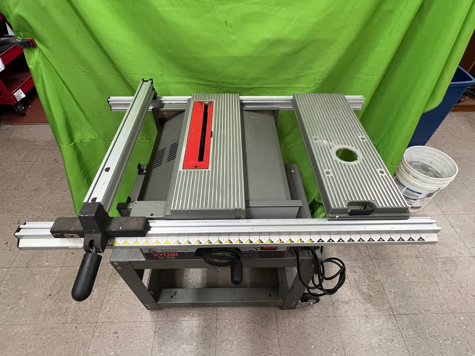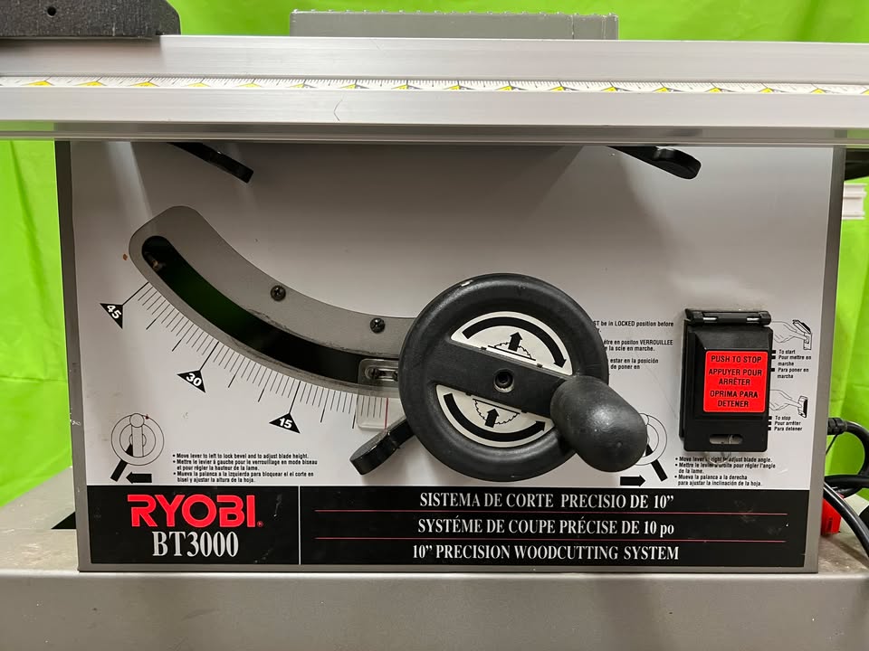 This Ryobi BT3000 10-inch precision cutting system delivers a maximum cutting depth of 3-9/16″ at 0° and 2-1/2″ at 45°. Powered by a 15-amp motor, it runs at 4,800 RPM and operates on standard 120V power. The saw features a rip fence that users praise for its smooth operation and locking, plus built-in dust collection that works well with a shop vac. Currently does not include sliding miter table but with its cult following it is easy to find parts online.