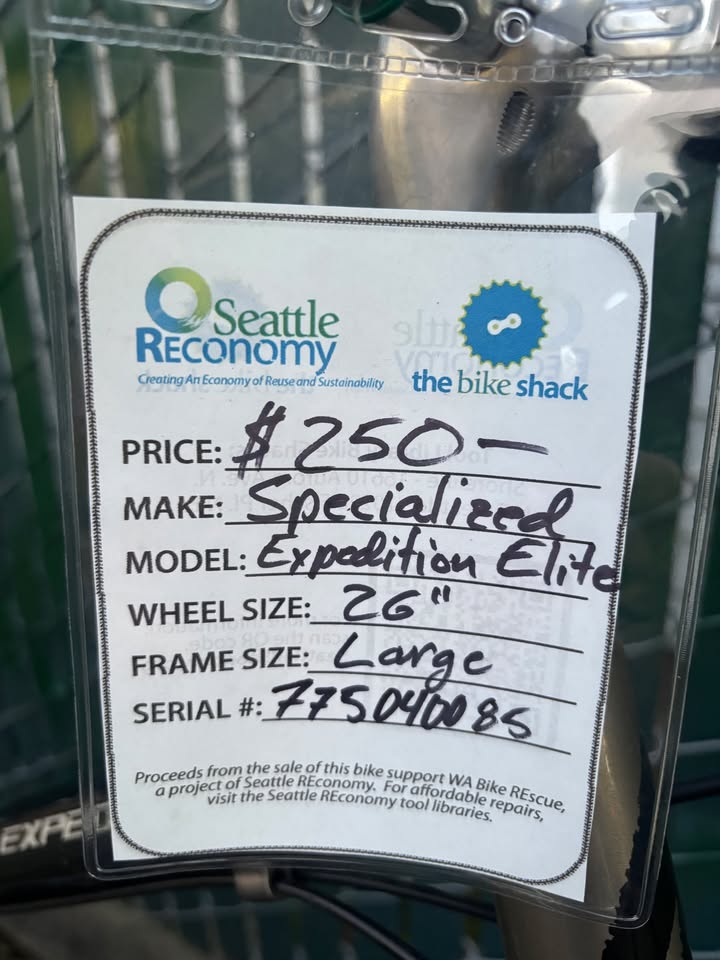 The Shoreline Tool Library is a project of the nonprofit Seattle REconomy. Become a member today to borrow from our library of thousands of tools. This and many other bikes and items are for sale in our Shoreline Tool Library Bike Shack and Reuse Materials Store! You do not need a membership to shop.