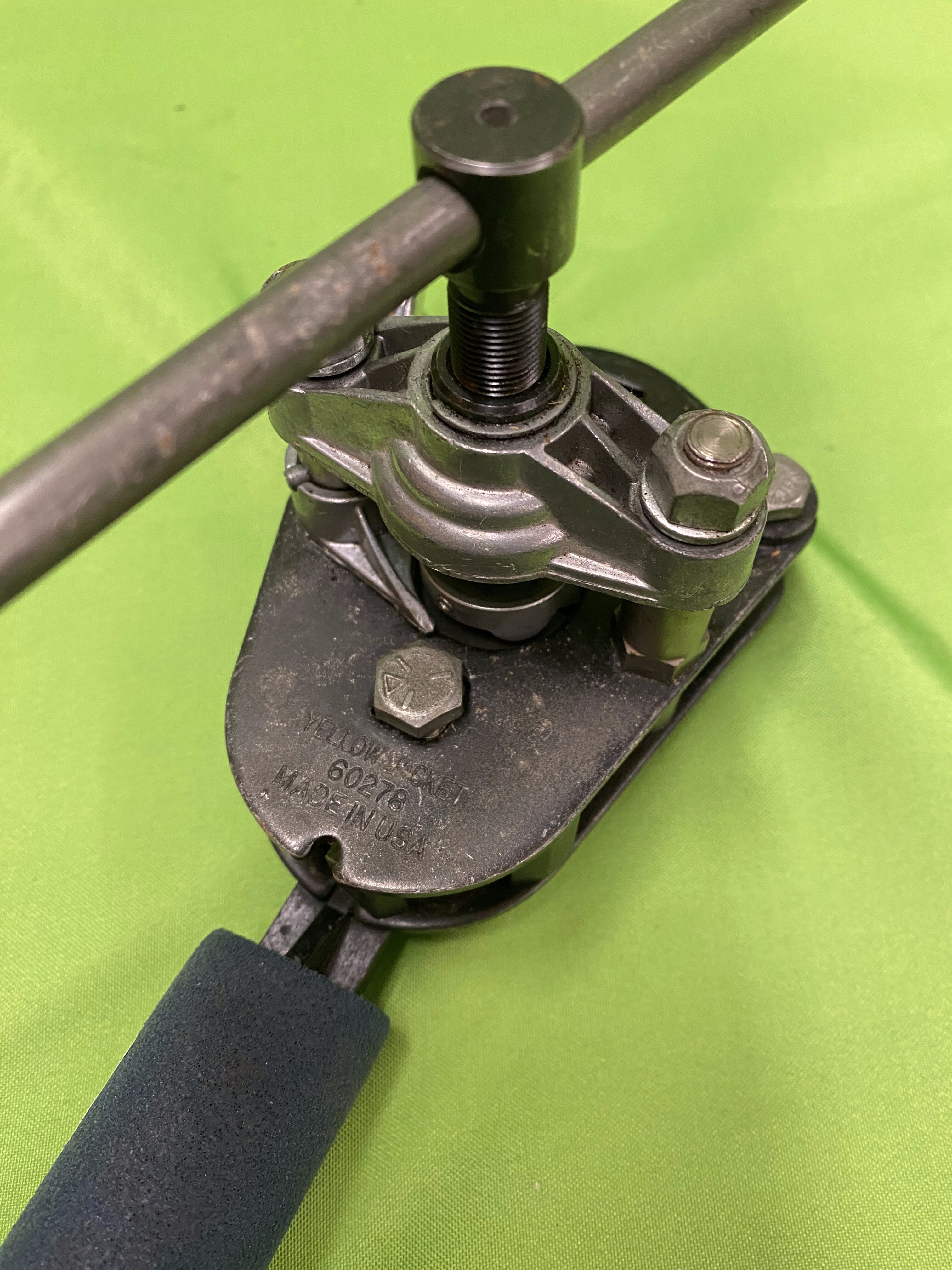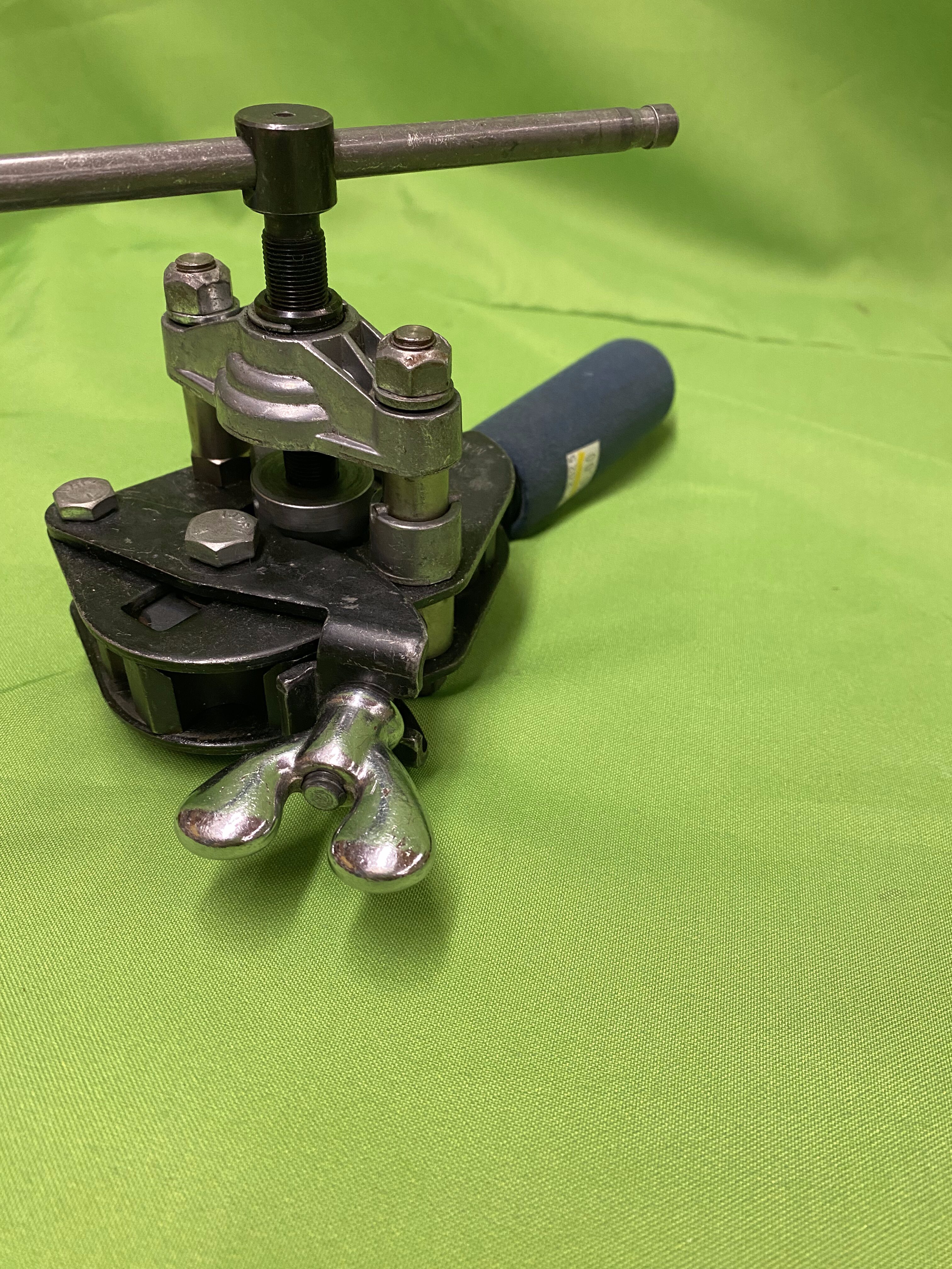 Quality flaring tool from Yellow Jacket, designed for precision and durability. This deluxe model handles tubing from 1/8" to 3/4" OD, perfect for HVAC, refrigeration, and plumbing work. The tool operates smoothly and produces clean, accurate flares every time. It’s in good used condition with light wear from normal use.