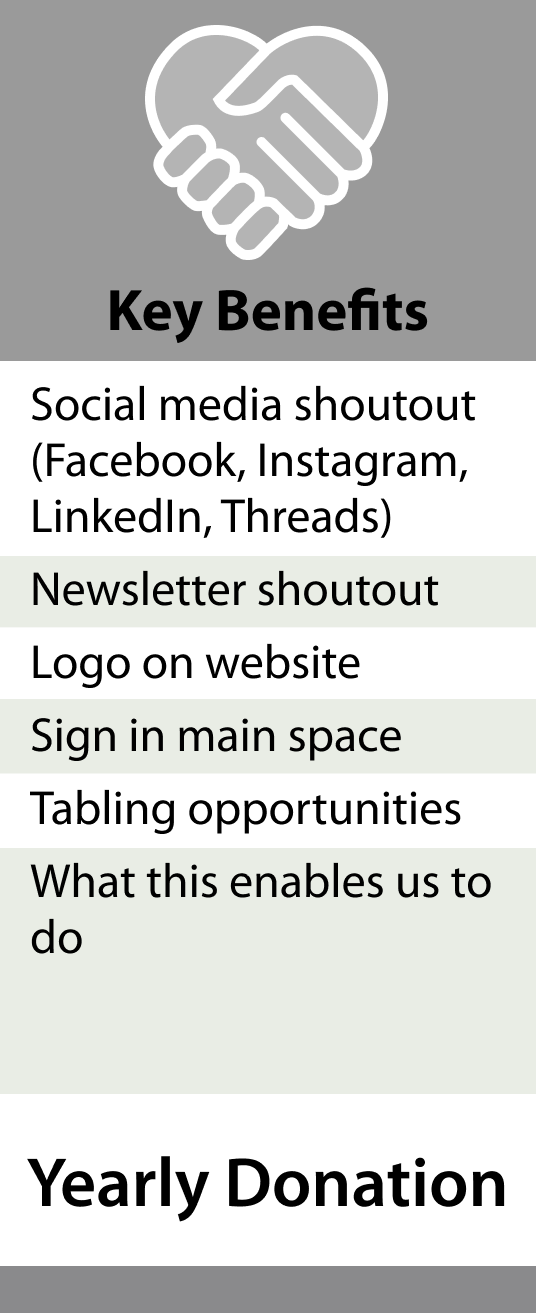 Below are the four sponsorship options and their key differences. For more detailed information please, view the sponsorship packet. If you would like to begin the sponsorship process, please email us with the subject line “Partnership Interest”